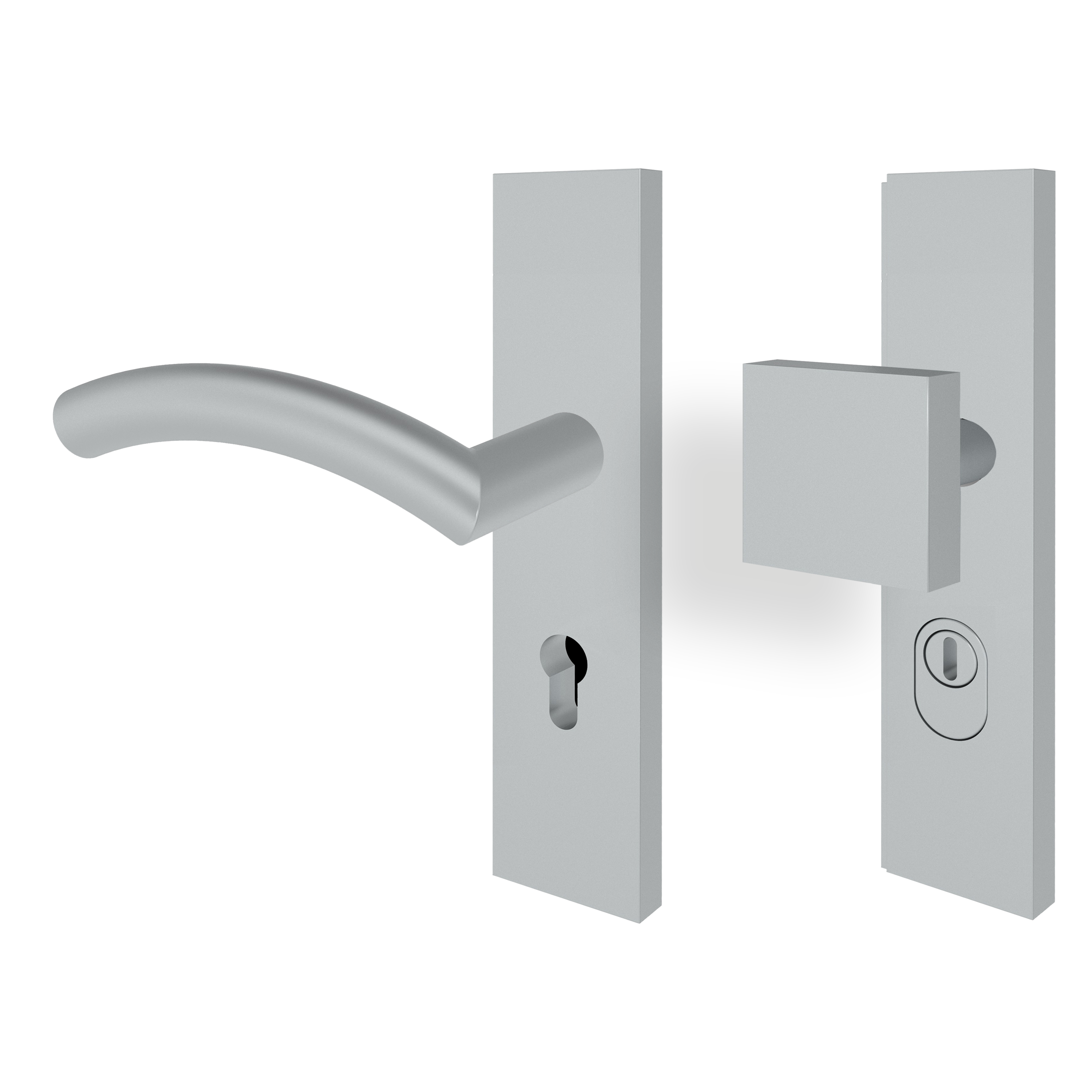 Helgoland wirkt aufgrund der besonderen Form frisch und modern. Der Drücker ist leicht nach oben gebogen, wodurch er besonders leicht zu greifen ist. Die Oberfläche ist aufgrund des matt gebürsteten Edelstahls leicht griffig, besonders robust und sorgt dafür, dass kaum Abdrücke hinterlassen werden. Die Schutzgarnitur mit einem massiven eckigen Langschild verfügt über einen einseitigen Türknauf mit Kernziehschutz sowie einem Lochteil, das um den Drücker ergänzt wird. Geprüft nach DIN 18257-ES1 und DIN EN1906-EN2.