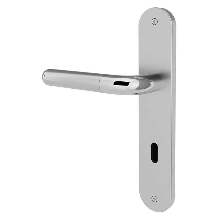 Es lebe der Materialmix: Unser Türgriff Viva überzeugt mit einer Kombination aus Chrom und satiniertem Edelstahl. Die elegante Materialkombination setzt sich mit kleinen Rillenverzierungen voneinander ab und trifft auf eine klassische, rundliche Formgebung.