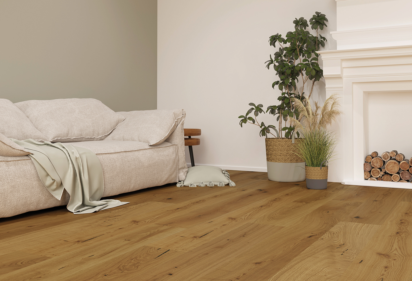 Wohlige Reinheit. In einen warmen Karamellfarbton getaucht, entfaltet sich bei dem Parkett Sydney (PB61003) vor dem Betrachter ein visuelles Meisterwerk, das wie die goldene Stunde des Sonnenuntergangs wirkt. Das naturgeölte Eichenholz wurde liebevoll veredelt und bietet durch das markante Holzbild eine Fülle an Nuancen und Kontrasten, welche schwarz gekittet sind und dadurch natürlich betont werden. Die Landhausdiele hat das Format 2200 x 180 mm.