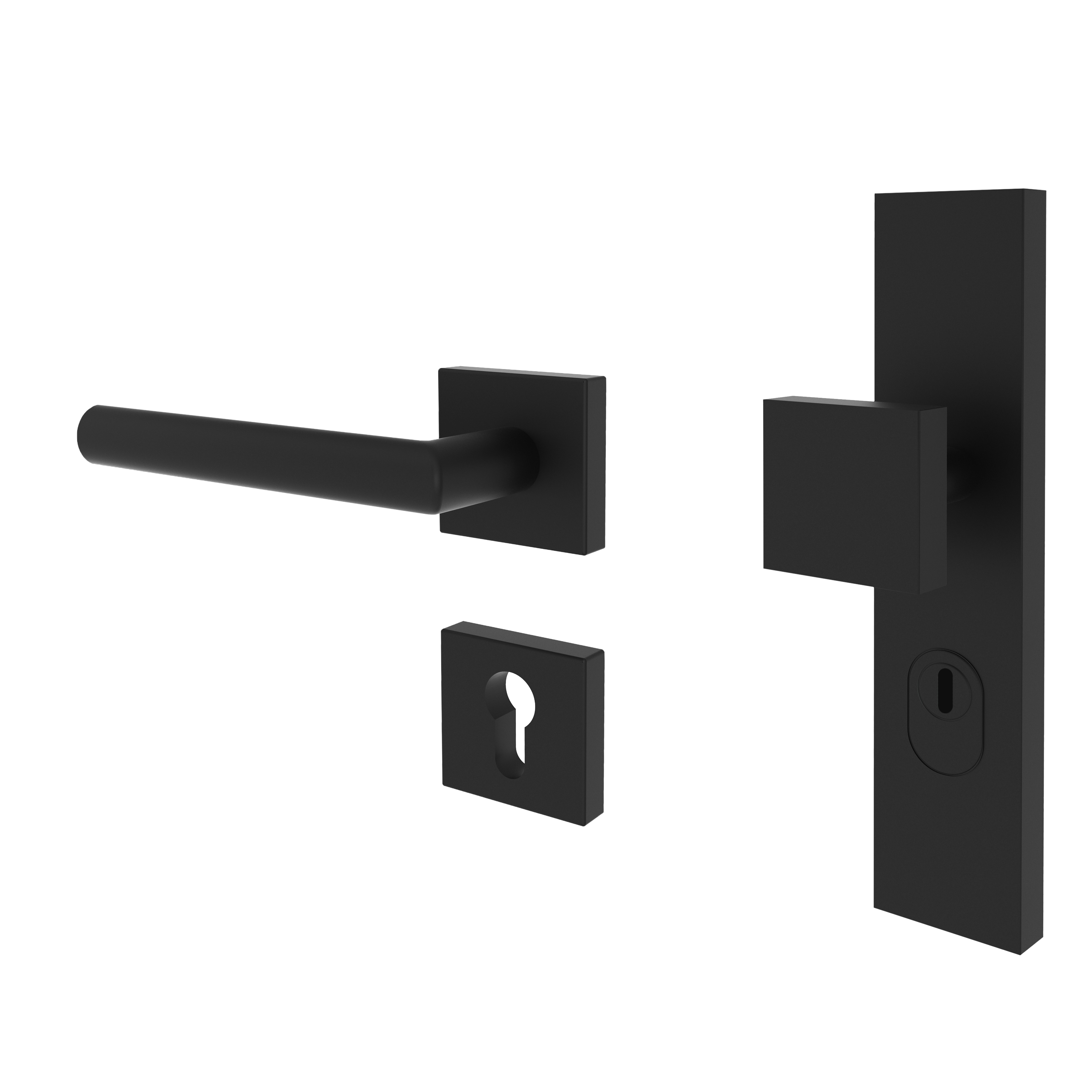 Mehr als nur Standard: Unser Baltrum wirkt schlicht und fügt sich optimal in jeden Wohnstil ein, ohne diesen zu überladen. Der Drücker hat eine klare L-Form. Die mattschwarze Oberfläche sorgt für eine moderne Optik und harmoniert optimal mit den aktuellen Wohntrends. Die Schutzgarnitur mit einem massiven eckigen Langschild verfügt über einen einseitigen Türknauf mit Kernziehschutz sowie einer einseitigen, eckigen Rosettengarnitur. Geprüft nach DIN 18257-ES1 und DIN EN1906-EN2.