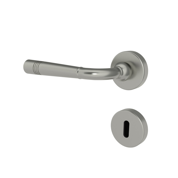 Eleganter Jugendstil: Unser Türgriff Arona mit Mattnickel-Oberfläche erinnert an längst vergangene Zeiten. Damals, als prunkvolle Türbeschläge noch aufwändige Handwerkskunst waren. Die leicht kegelförmige Formgebung wird um stilvolle Design-Verzierungen ergänzt. Arona ist der perfekte Partner für klassische Stiltüren, bildet aber auch einen spannenden Kontrast zu modernen Türen.
