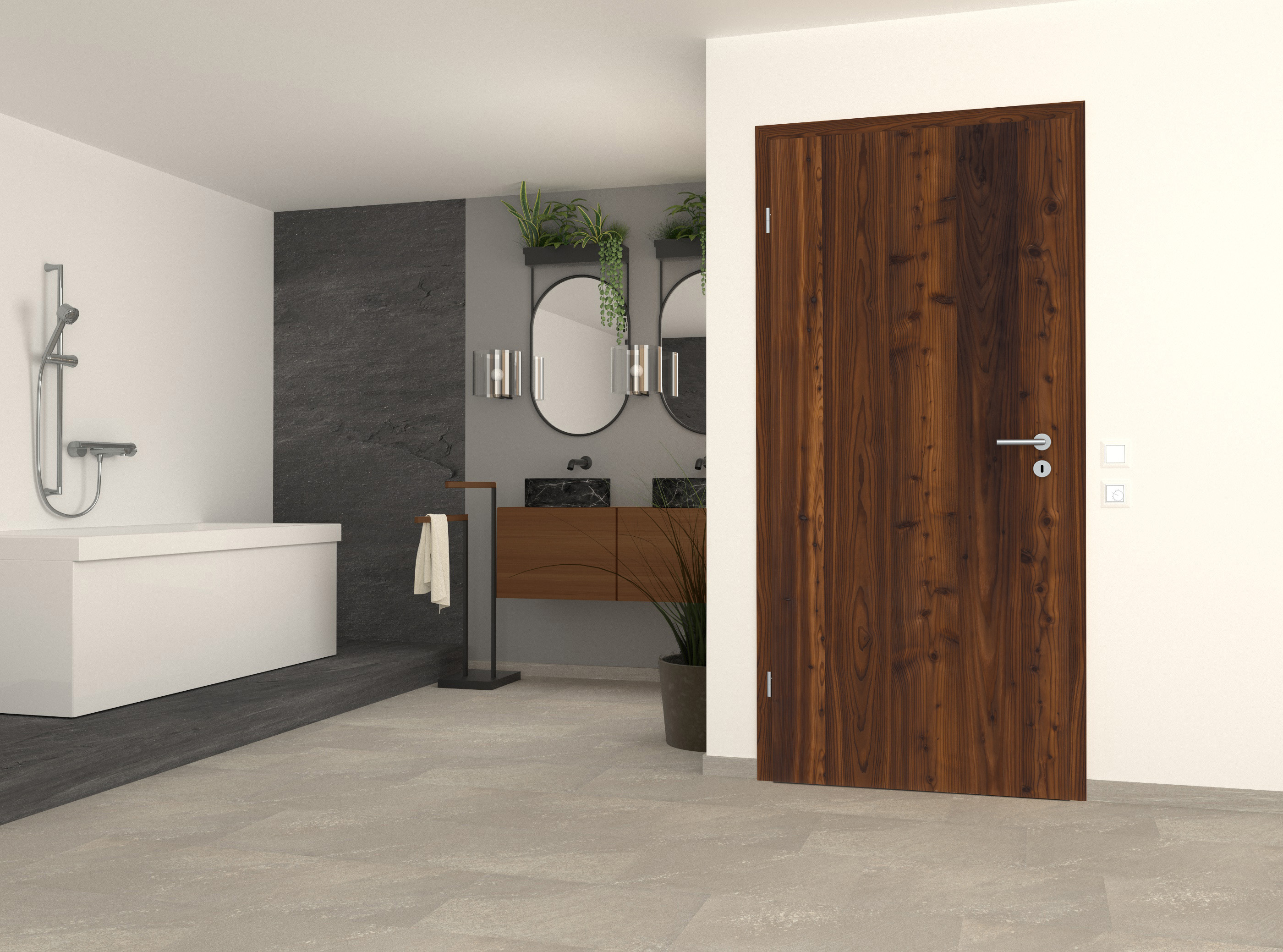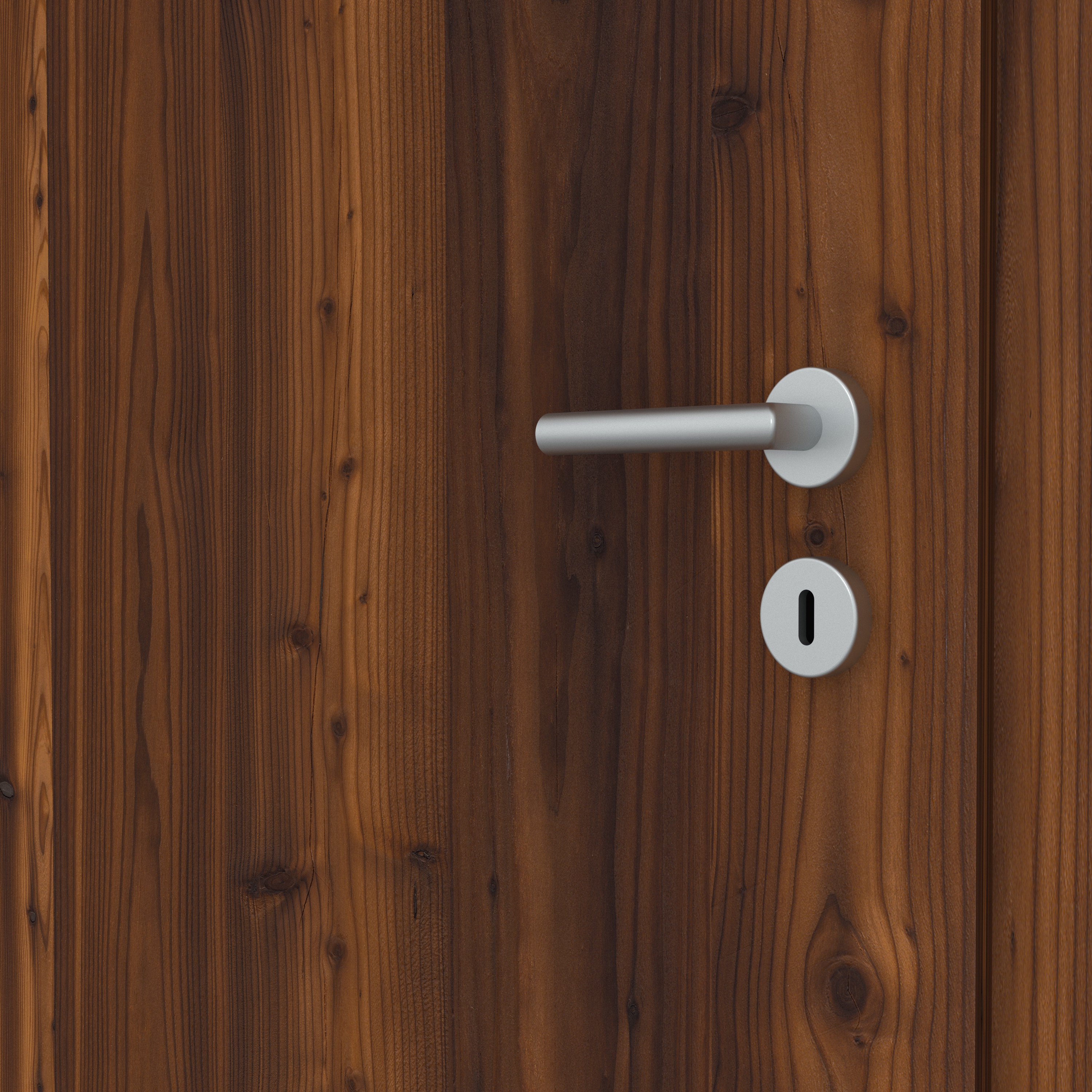 Charakterstarke Natur: Unsere Echtholztür Furnier Antik Lärche Smoke überzeugt mit markanten Astlöchern und Rissen, welche mit einem schwarzen Vlies hinterlegt sind. Dadurch entsteht eine einzigartige Optik und Haptik, wie sie aus der freien Natur bekannt ist. Die vertikale Zusammensetzung der Lärchenfurniere erzeugt eine wildwüchsige und außergewöhnliche Längsoptik - mehr Natürlichkeit geht kaum. Das heimische Lärchenholz ist besonders hochwertig und zählt zu den härtesten Hölzern. Bei diesem Furnier wird das Lärchenholz geräuchert und erhält dadurch einen braunen bis dunkelbraunen Farbton. Das daraus resultierende kontrastreiche Farbspiel macht diese Innentür zu einem charakterstarken Unikat und zu einem Highlight in jedem Wohnraum. Die Mattlackierung erzeugt zudem eine sehr moderne Wirkung.