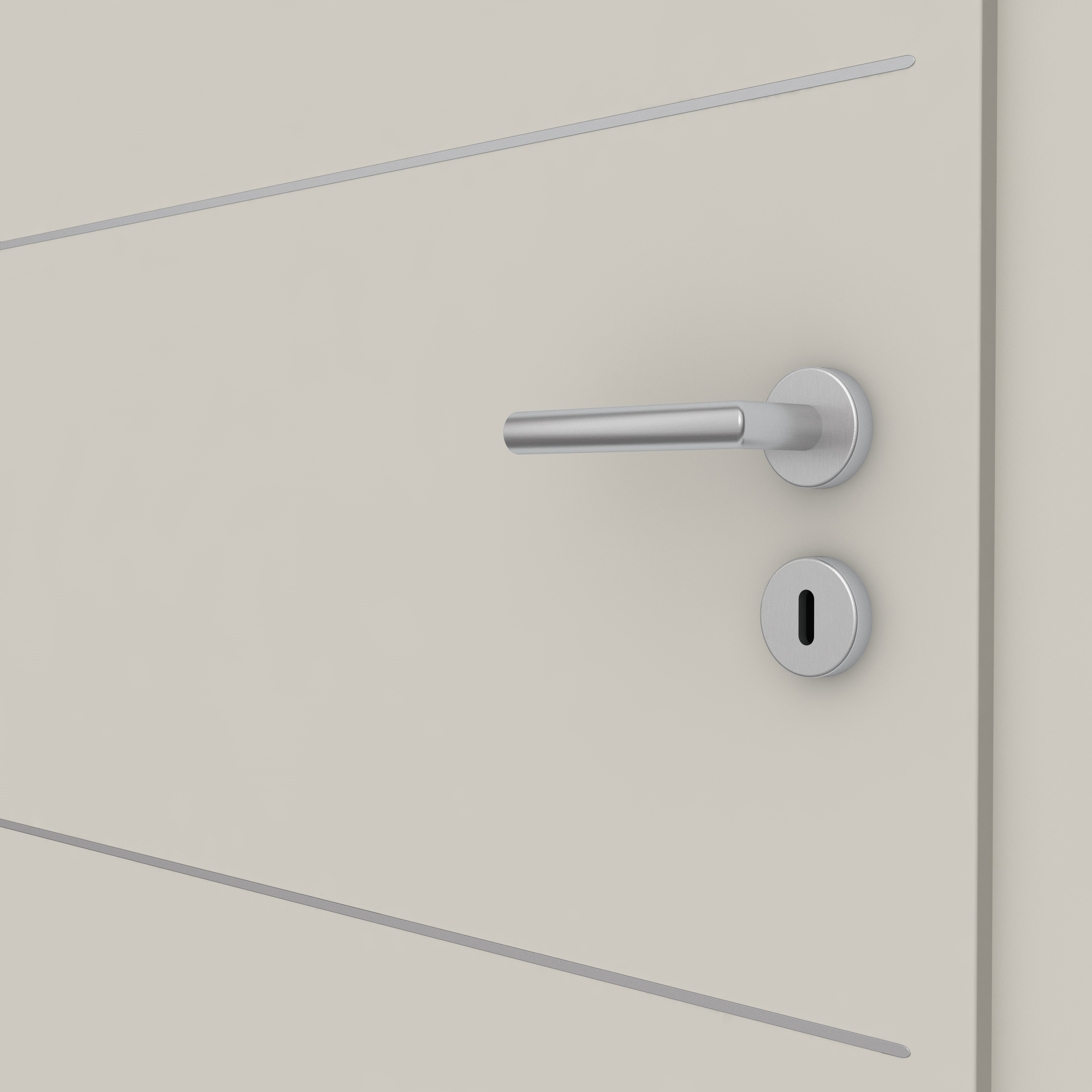 Hochwertge Metallveredelungen: Unsere CPL Colour Angoragrau sorgt für eine moderne Leichtigkeit und eine Wohlfühlatmosphäre im Wohnraum. Die Innentür zeichnet sich nicht nur durch ein mattes und helles Grau-Beige aus, sondern bietet mit ihrer dezenten Pergamentstruktur auch ein ganz besonderes Design. Das Türblatt verfügt über eine Designkante, die mit ihrem minimalen Kantenradius eine sehr moderne Optik erzeugt. Die Oberfläche aus CPL macht die Tür zudem besonders robust und langlebig. Flächenbündige Lisenen im klassischen Edelstahl oder modernen Mattschwarz erzeugen besondere Akzente. Eine Auswahl an verschiedenen Designs sorgen für die perfekte Abstimmung auf den Wohn- und Einrichtungsstil.