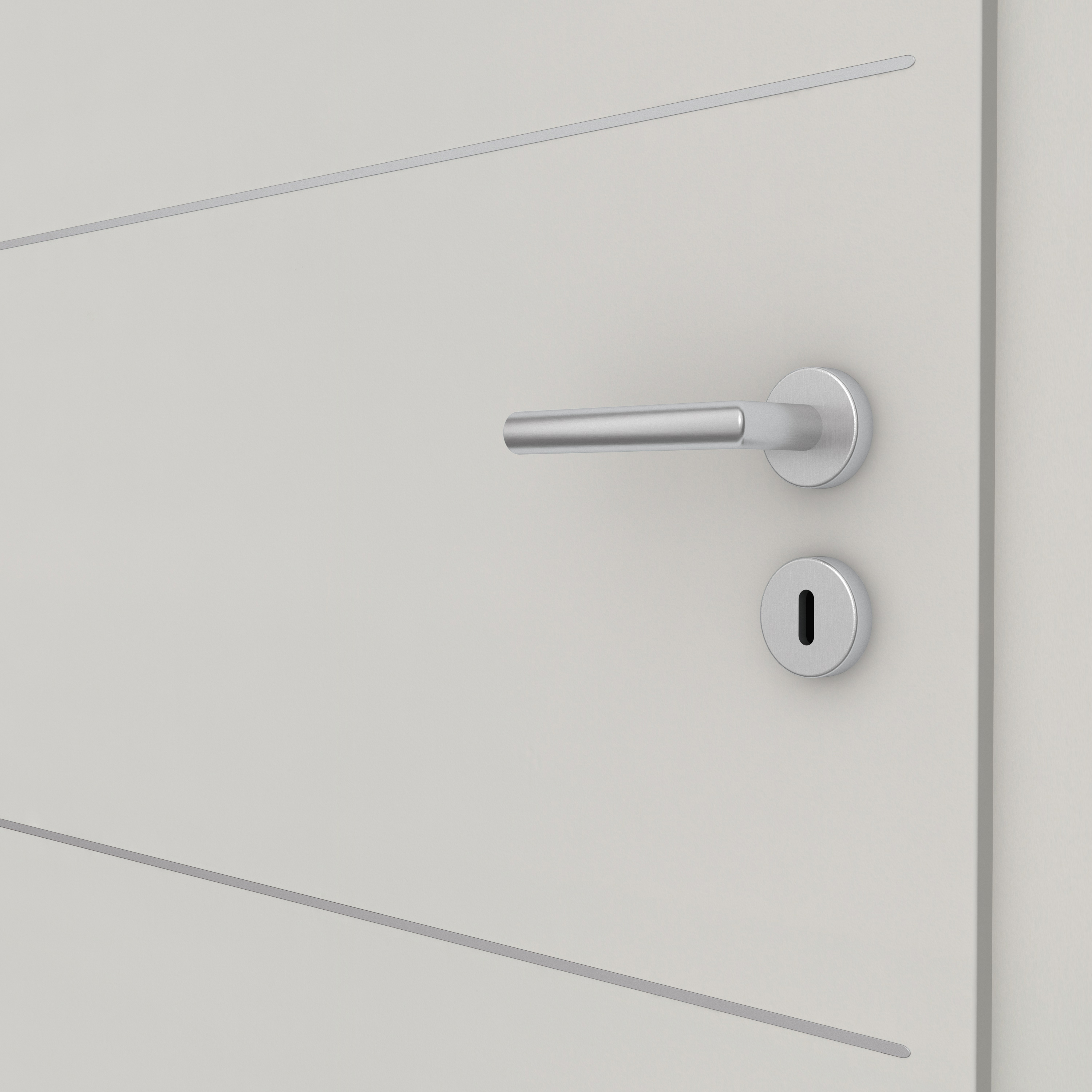 Hochwertige Metallveredelungen in Edelstahloptik der Schwarz setzen Akzente – besonders bei Türen. Ob horizontal oder vertikal verlaufend, flächenbündig in die Oberflächen eingelassen bieten Liseneneine Vielzahl von Designmöglichkeiten. So verleihen sie jeder Tür ihren eigenen Charme. Die ansonsten sehr schlichte Tür CPL Colour Uni grau wird durch die Lisenen zu einem wahren Design-Highlight.