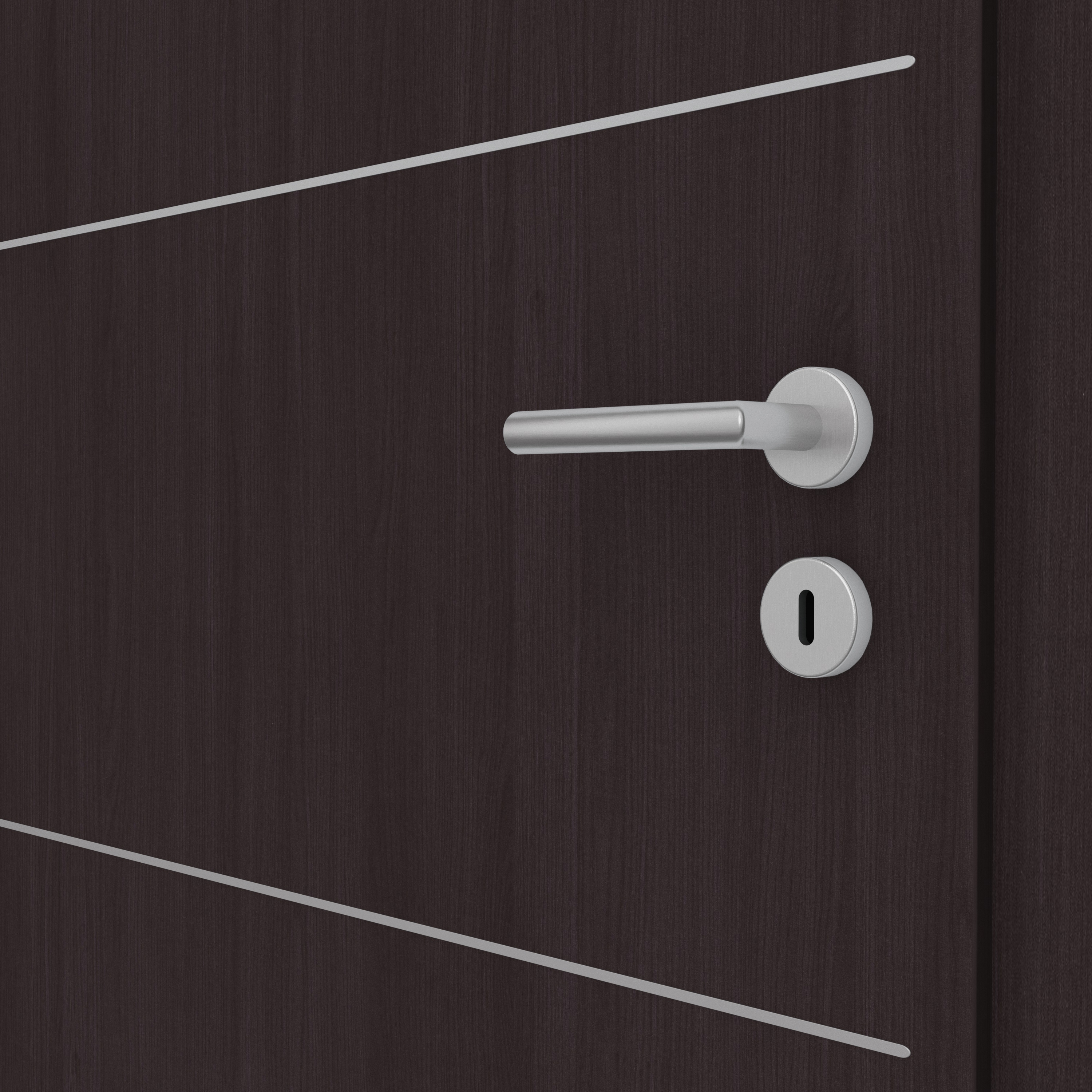 Colour meets Holzdesign: Durch die dezente Holzstruktur in Kombination mit dem modernen Farbton Graphitgrau überzeugt die CPL Mattline-Oberfläche nicht nur optisch, sondern schafft auch ein haptisches Erlebnis mit einem besonderen Matt-feeling. Die Längsstruktur sorgt für eine lebendige, aber auch zurückhaltende Atmosphäre. Das dunkle Braun-Grau wirkt sehr charakterstark und lässt sich besonders gut mit weißen Wandfarben kombinieren. Das Türblatt verfügt über eine Designkante, die mit ihrem minimalen Kantenradius eine sehr moderne Optik erzeugt. Die Oberfläche aus CPL macht die Tür zudem besonders robust und langlebig. Passend zur Tür führen wir auch Zargen CPL Mattline Graphitgrau im Sortiment. Flächenbündige Lisenen im klassischen Edelstahl oder modernen Mattschwarz erzeugen besondere Akzente. Eine Auswahl an verschiedenen Designs sorgen für die perfekte Abstimmung auf den Wohn- und Einrichtungsstil.