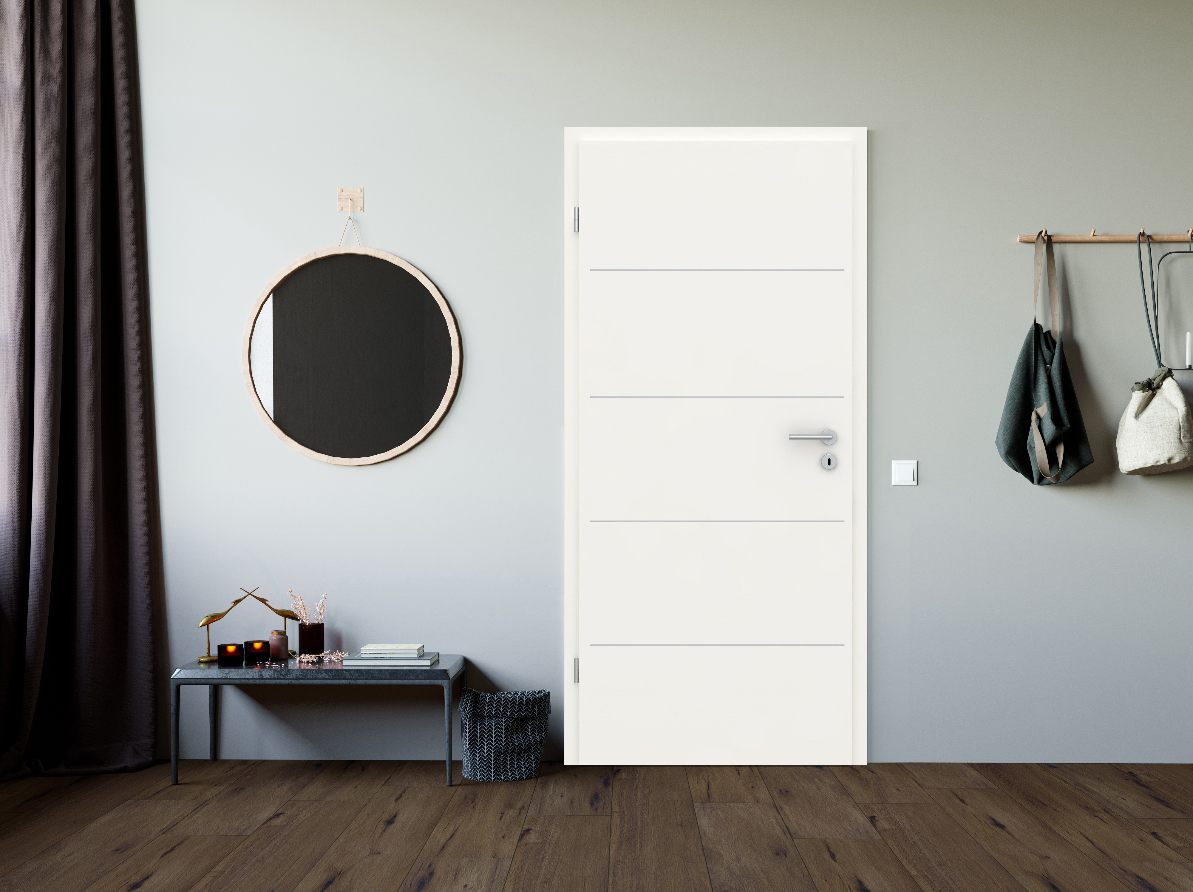 Hochwertige Metallveredelungen: Eine innovative Oberflächentechnologie in Kombination mit einem modernen Mattweiß zeichnet diese Innentür aus. Diese erfüllt nicht nur alle positiven Eigenschaften von CPL-Türen, sondern hebt die Türenästhetik auf ein neues Level. Dank einer besonderen Beschichtung entsteht nicht nur eine sehr matte Optik, sondern auch eine Oberfläche, die resistent gegen Fingerabdrücke oder ähnliche Verschmutzungen ist – eben 100% pflegeleicht. Die samtige Haptik lädt zum Anfassen ein und erzeugt eine einzigartige Wohlfühlatmosphäre. Flächenbündige Lisenen im klassischen Edelstahl oder modernen Mattschwarz erzeugen besondere Akzente. Eine Auswahl an verschiednen Designs sorgen für die perfekte Abstimmung auf den Wohn- und Einrichtungsstil.