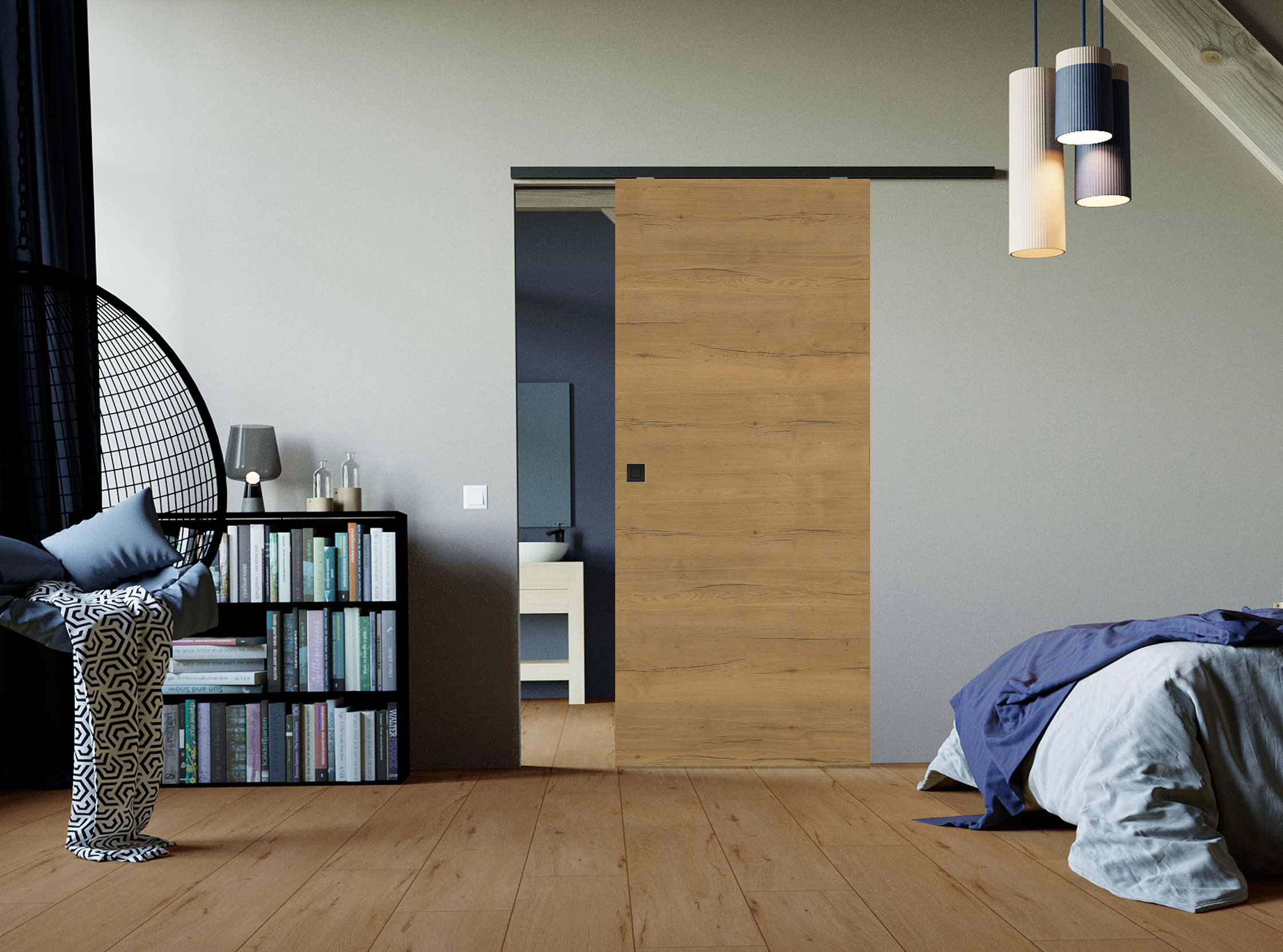 Satte Holzoptik und -haptik: Die CPL Struktura Fachwerk überzeugt nicht nur durch ihr authentisches Holzdesign, sondern sie fühlt sich durch ihre strukturierte Oberfläche auch wie echtes Holz an. Die Auswahl an verschiedenen Dekoren in mittleren bis dunklen Holztönen lässt sich wunderbar mit hellen Wandfarben kombinieren. Als Holzschiebetür mit dem Schiebetürsystem Classic 50/120 oder Basic 80 bietet die Tür eine platzsparende Lösung, einen flexiblen Raumtrenner sowie echte Barrierefreiheit.