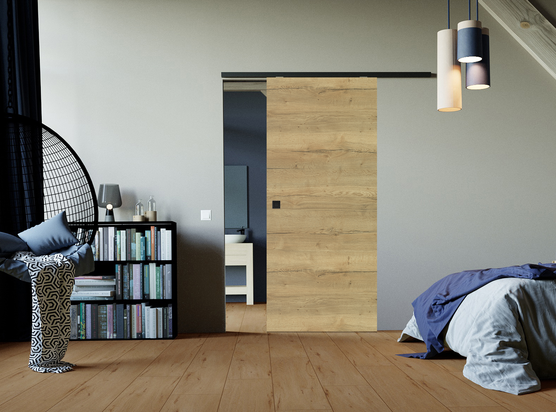 Satte Holzoptik und -haptik: Die CPL Struktura Fachwerk überzeugt nicht nur durch ihr authentisches Holzdesign, sondern sie fühlt sich durch ihre strukturierte Oberfläche auch wie echtes Holz an. Die Auswahl an verschiedenen Dekoren in mittleren bis dunklen Holztönen lässt sich wunderbar mit hellen Wandfarben kombinieren. Als Holzschiebetür mit dem Schiebetürsystem Classic 50/120 oder Basic 80 bietet die Tür eine platzsparende Lösung, einen flexiblen Raumtrenner sowie echte Barrierefreiheit.