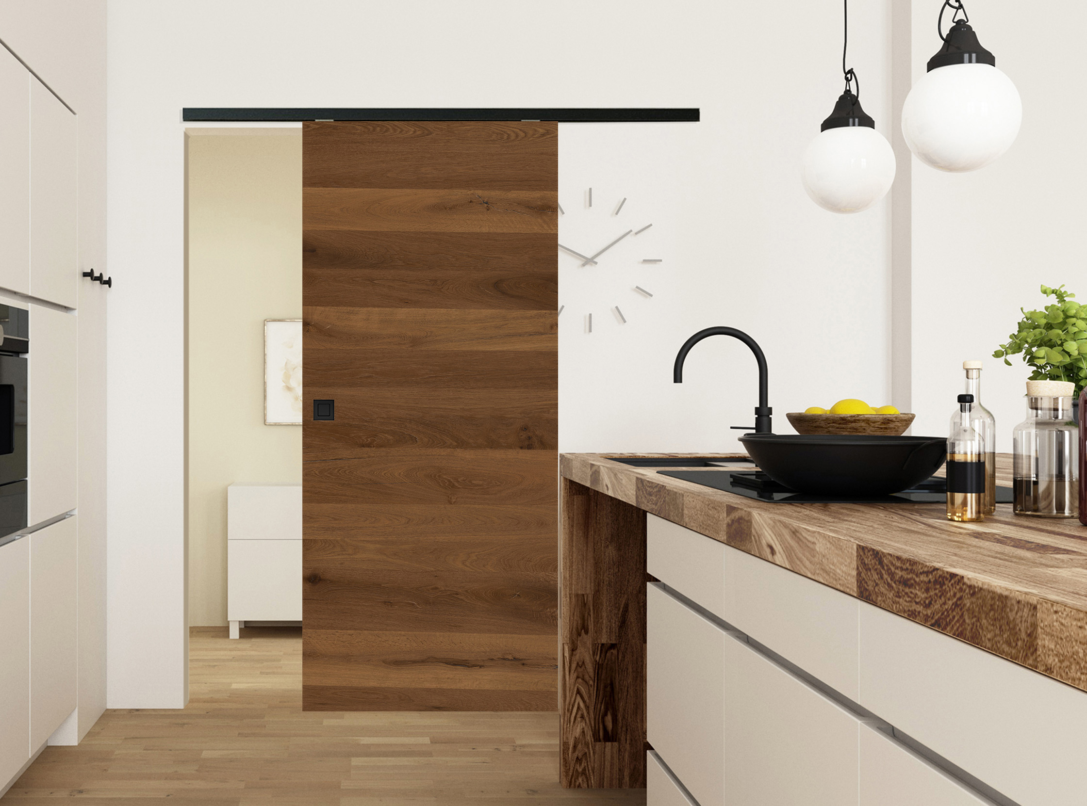 Charakterstarke Natur: Unsere Echtholztür Furnier Antik Eiche Bronze quer überzeugt mit markanten Astlöchern und Rissen, welche mit einem schwarzen Vlies hinterlegt sind. Dadurch entsteht eine einzigartige Optik und Haptik, wie sie aus der freien Natur bekannt ist. Die horizontale Zusammensetzung der Eichenfurniere erzeugt eine wildwüchsige und außergewöhnliche Queroptik - mehr Natürlichkeit geht kaum. Das daraus resultierende lebhafte Farbspiel in warmen Brauntönen macht diese Innentür zu einem charakterstarken Unikat und zu einem Highlight in jedem Wohnraum. Die Mattlackierung erzeugt zudem eine sehr moderne Wirkung. Als Schiebetür bietet sie nicht nur einen hohen Raumkomfort, sondern ist auch eine platzsparende Lösung. Hierfür stehen verschiedenen Schiebetürsysteme zur Auswahl. Passend zur Tür führen wir auch Schiebetürzargen in Eiche Bronze im Sortiment.