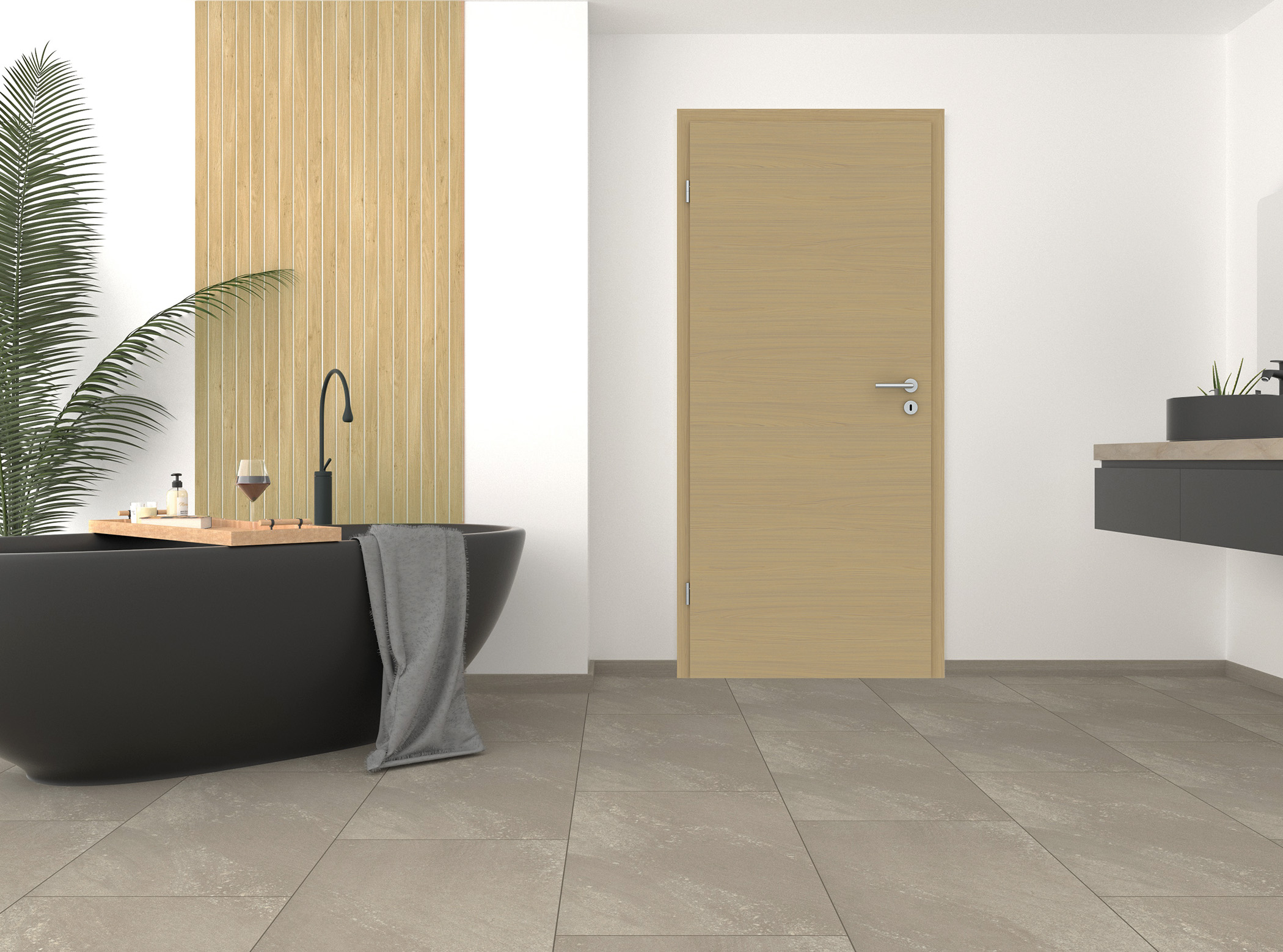 Moderner Oberflächeneffekt: Unsere Innentür CPL Mattline Eiche Naturbeige quer überzeugt mit einer authentischen Eichenachbildung in Kombination mit einem warmen Beigeton, wodurch die Tür besonders natürlich wirkt. Insbesondere weiße Wandfarben und helle Möbel setzen dieses Modell gekonnt in Szene. Dank einer innovativen Oberflächenbehandlung entsteht ein moderner Mattoptik, die je nach Lichteinfall einen unterschiedlichen Effekt erzeugt – dieser wirkt bei der Querstruktur in der Regel noch intensiver. Das Türblatt verfügt über eine Designkante mit einem minimalen Kantenradius, der die moderne Optik unterstreicht. Die Oberfläche aus CPL macht die Tür zudem besonders robust und langlebig. Passend zur Tür führen wir auch Zargen CPL Mattline Eiche Naturbeige im Sortiment.