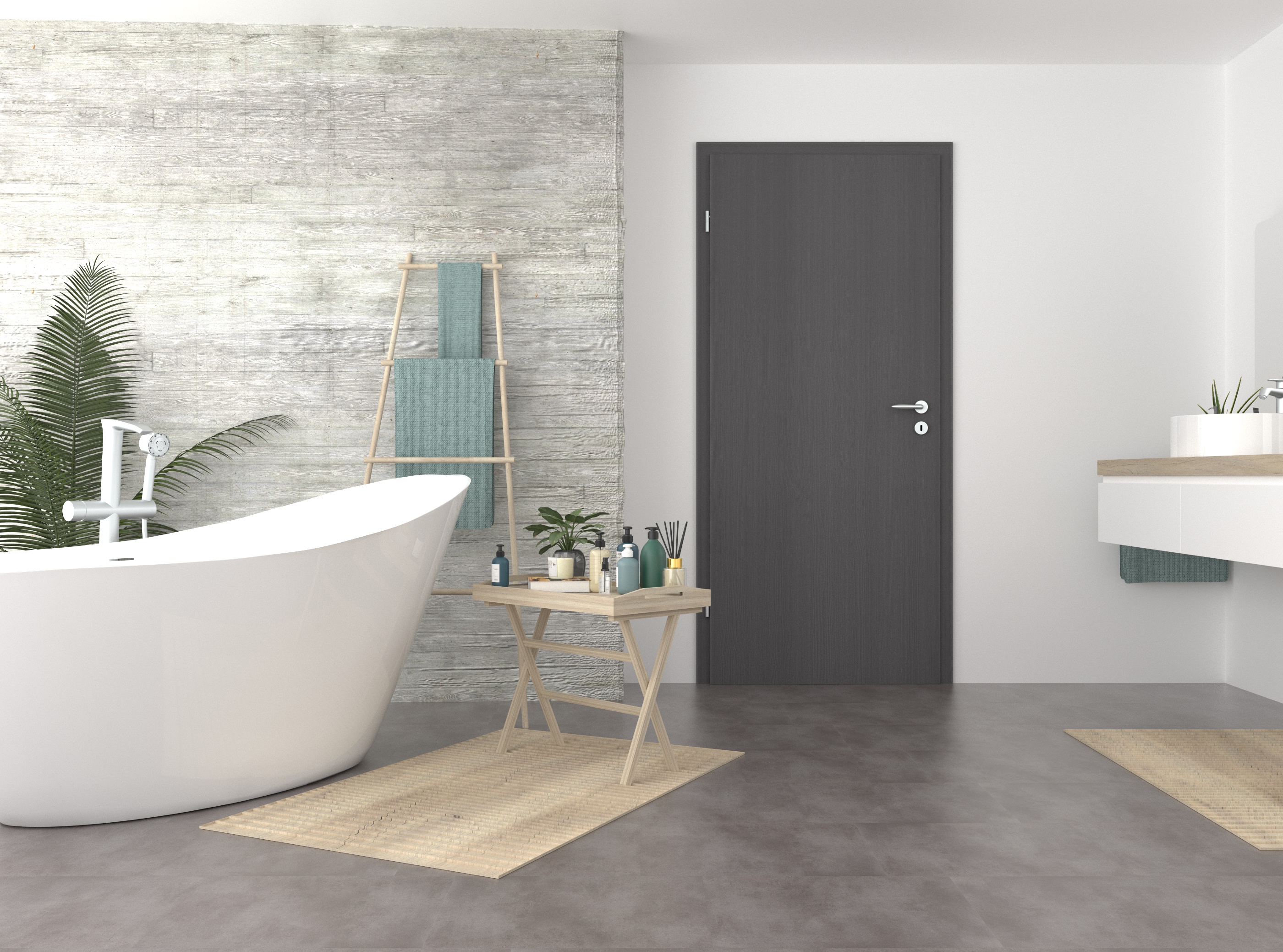 Colour meets Holzdesign: Durch die dezente Holzstruktur in Kombination mit dem modernen Farbton Mineralgrau überzeugt die CPL Mattline-Oberfläche nicht nur optisch, sondern schafft auch ein haptisches Erlebnis mit einem besonderen Matt-feeling. Die Längsstruktur sorgt für eine lebendige, aber auch zurückhaltende Atmosphäre. Das matte und dunkle Grau, ähnlich RAL 7012, wirkt ästhetisch und lässt sich besonders gut mit weißen oder grauen Wandfarben kombinieren. Das Türblatt verfügt über eine Designkante, die mit ihrem minimalen Kantenradius eine sehr moderne Optik erzeugt. Die Oberfläche aus CPL macht die Tür zudem besonders robust und langlebig. Passend zur Tür führen wir auch Zargen CPL Mattline Mineralgrau im Sortiment.