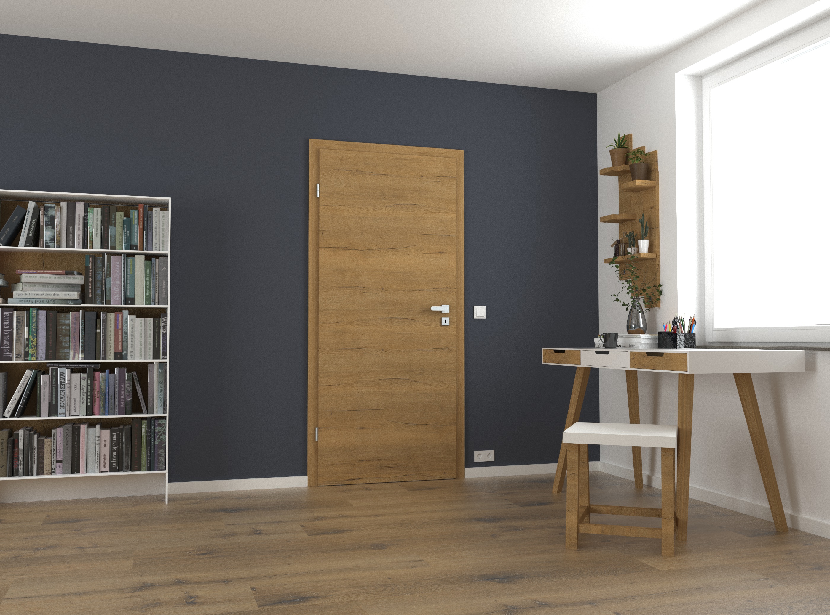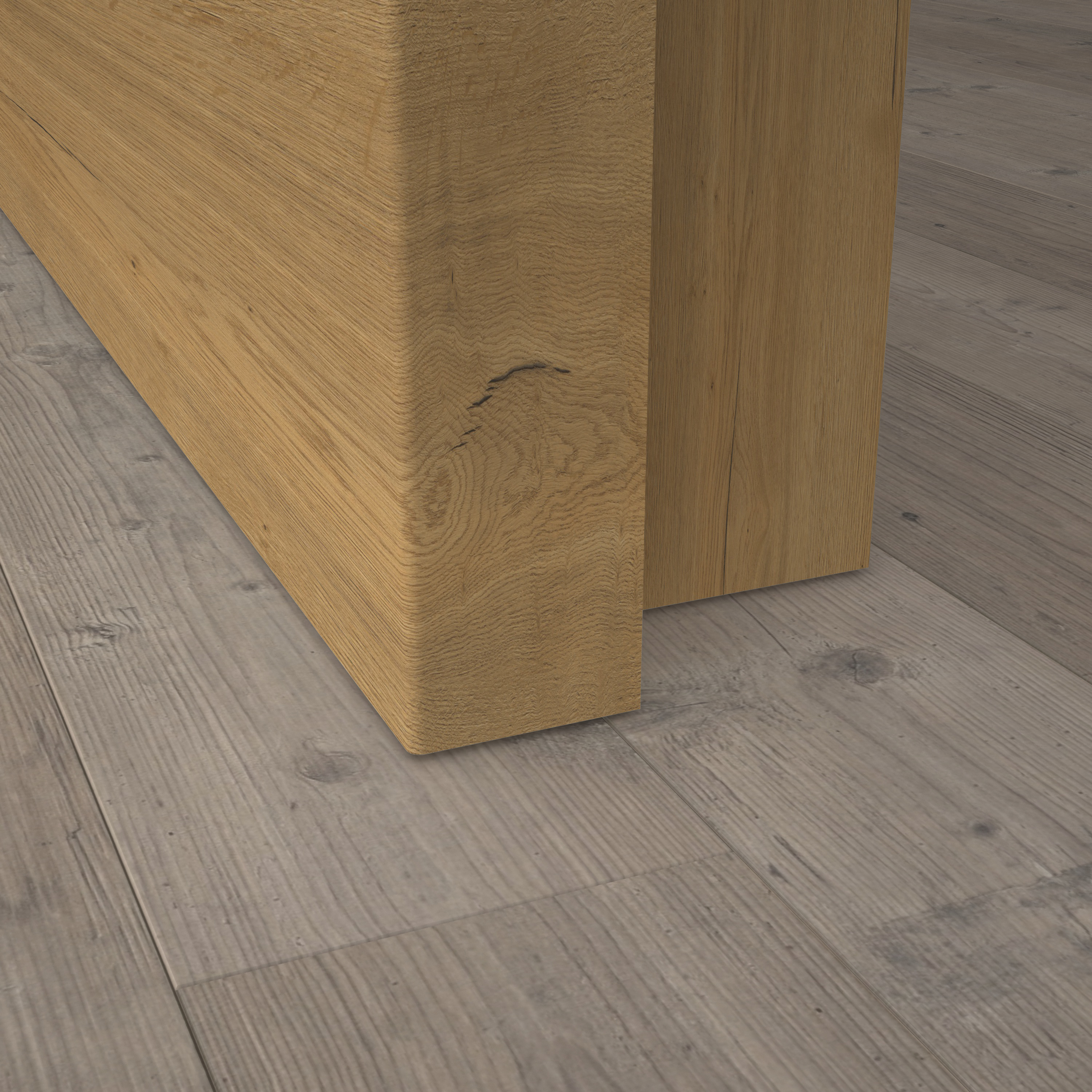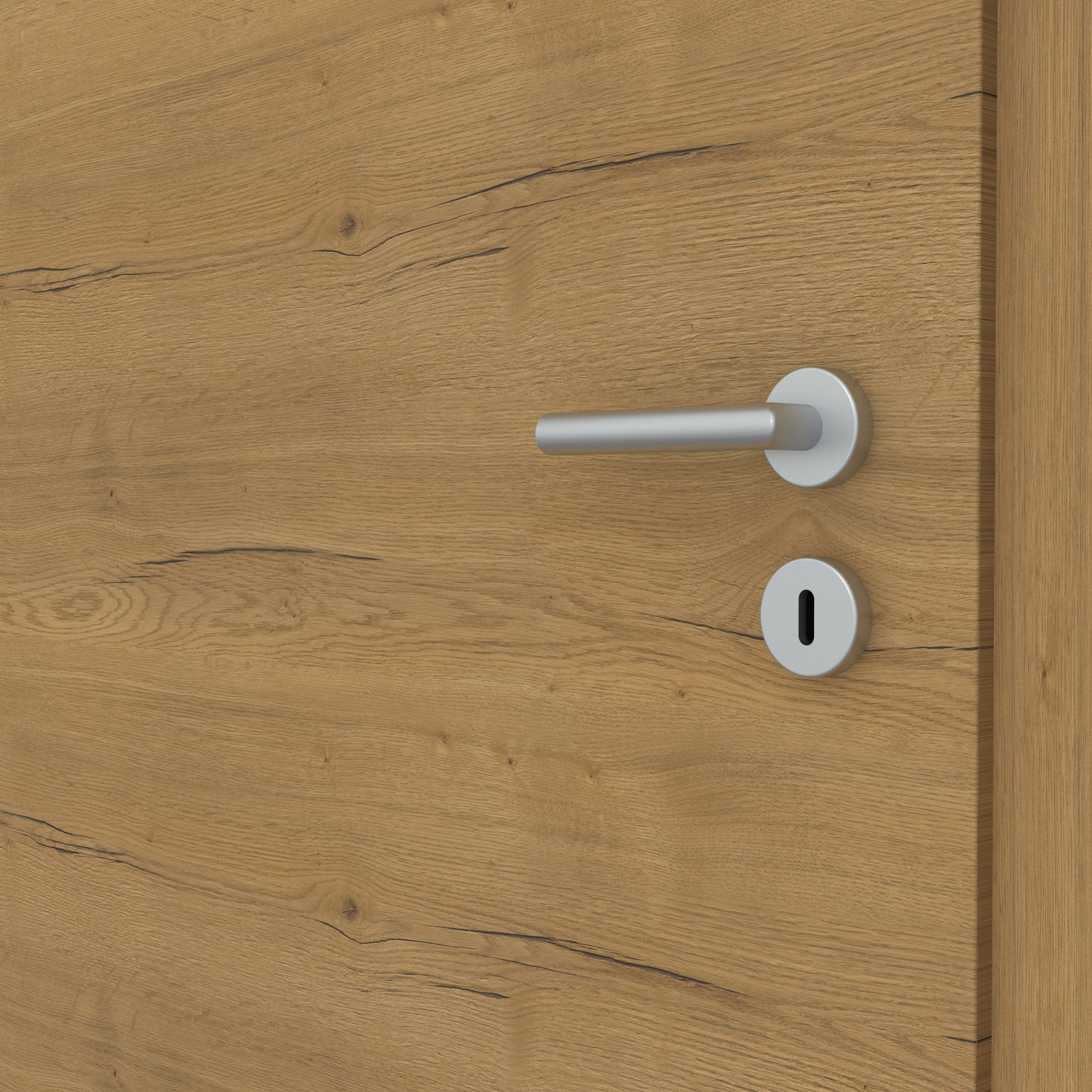 Wie echtes Holz: Das Dekor Fachwerk Eiche Honig quer steht für höchste Authentizität und ist dank der fühlbaren Holzstruktur in Queroptik kaum von einer Echtholzoberfläche zu unterscheiden. Der warme Braunton mit einer auffälligen Holzmaserung steht für pure Natürlichkeit und sorgt für eine behagliche Raumatmosphäre. Das Türblatt verfügt über eine Designkante, die mit ihrem minimalen Kantenradius eine sehr moderne Optik erzeugt. Die Oberfläche aus CPL macht die Tür zudem besonders robust und langlebig. Passend zur Tür führen wir auch Zargen Fachwerk Eiche Honig im Sortiment. Wir empfehlen hierzu unsere Fußleisten Design in Weiß 9003 oder 9010 – passend zur Wandfarbe und den Eichrichtungselementen.
