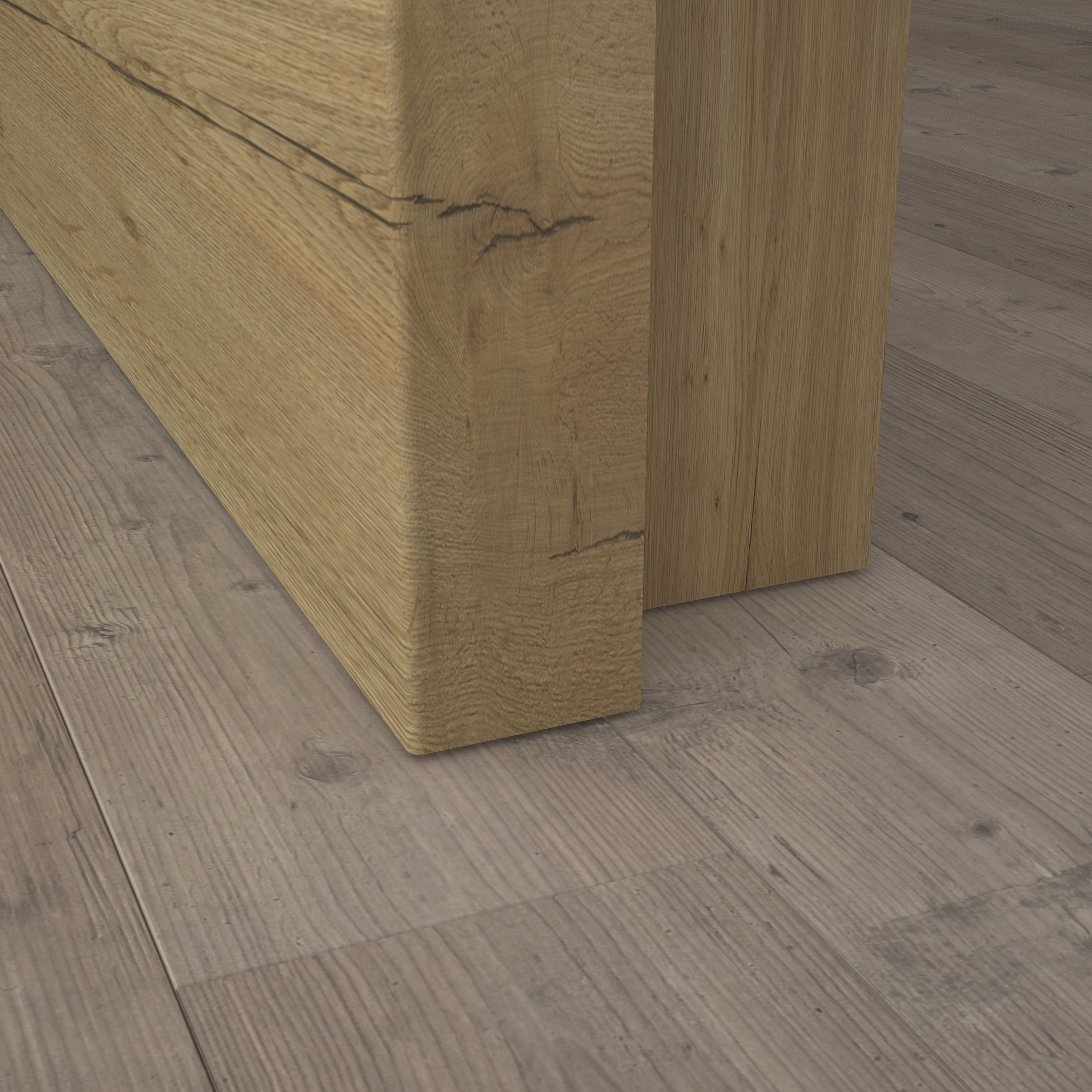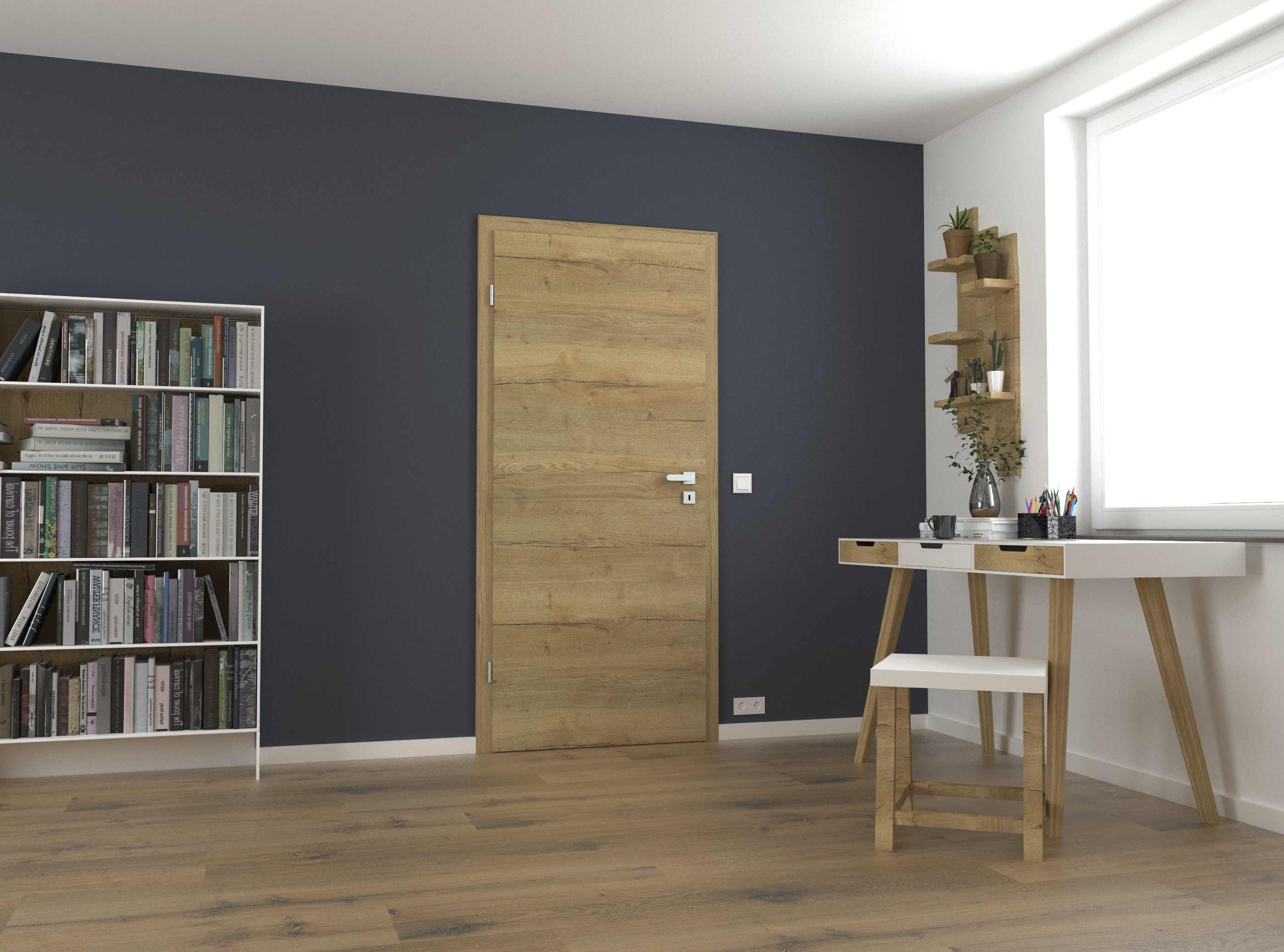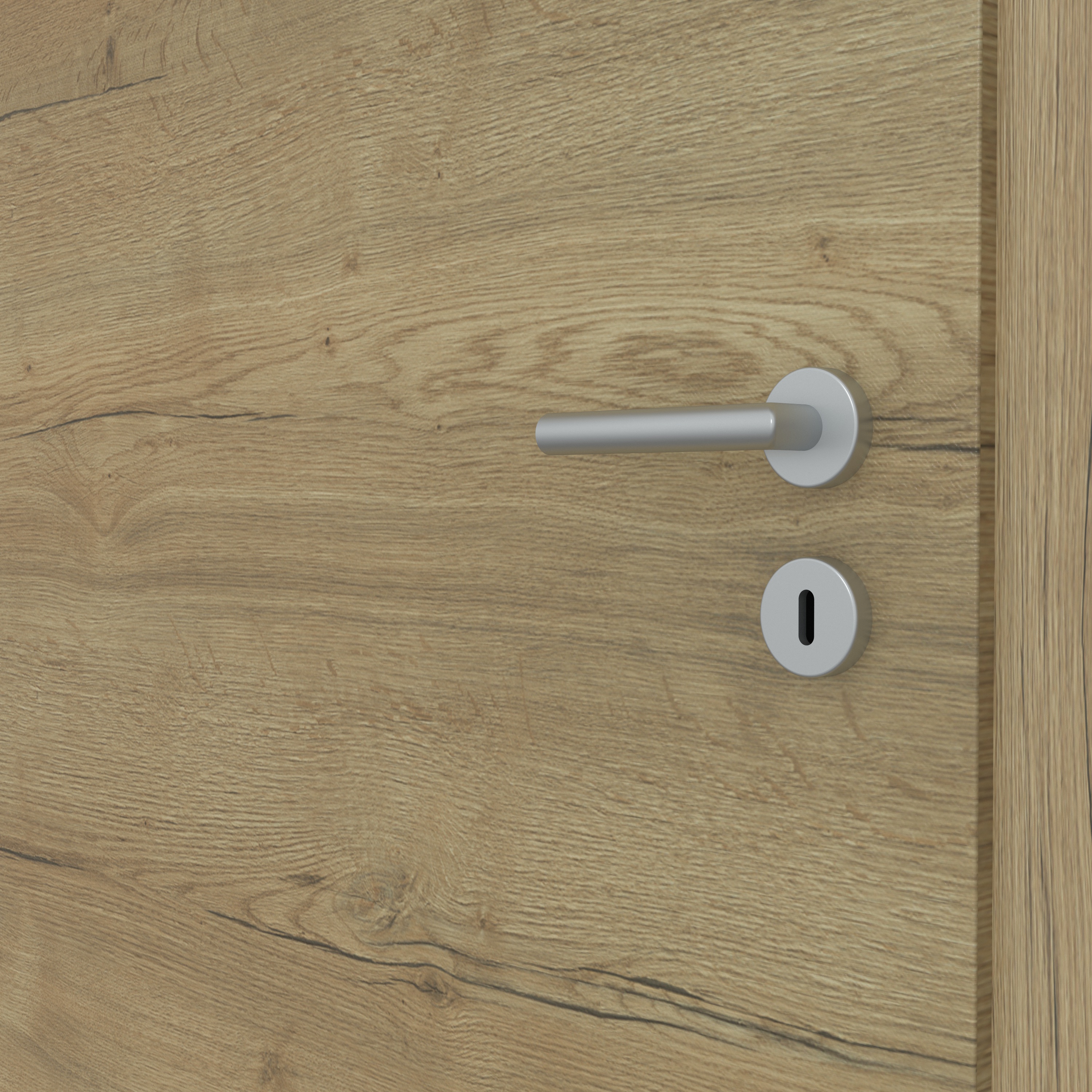 Wie echtes Holz: Das Dekor Fachwerk Eiche Natur quer steht für höchste Authentizität und ist dank der fühlbaren Holzstruktur in Queroptik kaum von einer Echtholzoberfläche zu unterscheiden. Der warme Eiche-Farbton mit einer auffälligen Holzmaserung steht für pure Natürlichkeit und sorgt für eine behagliche Raumatmosphäre. Das Türblatt verfügt über eine Designkante, die mit ihrem minimalen Kantenradius eine sehr moderne Optik erzeugt. Die Oberfläche aus CPL macht die Tür zudem besonders robust und langlebig. Passend zur Tür führen wir auch Zargen Fachwerk Eiche Natur im Sortiment. Wir empfehlen hierzu unsere Fußleisten Design in Weiß 9003 oder 9010 – passend zur Wandfarbe und den Eichrichtungselementen.