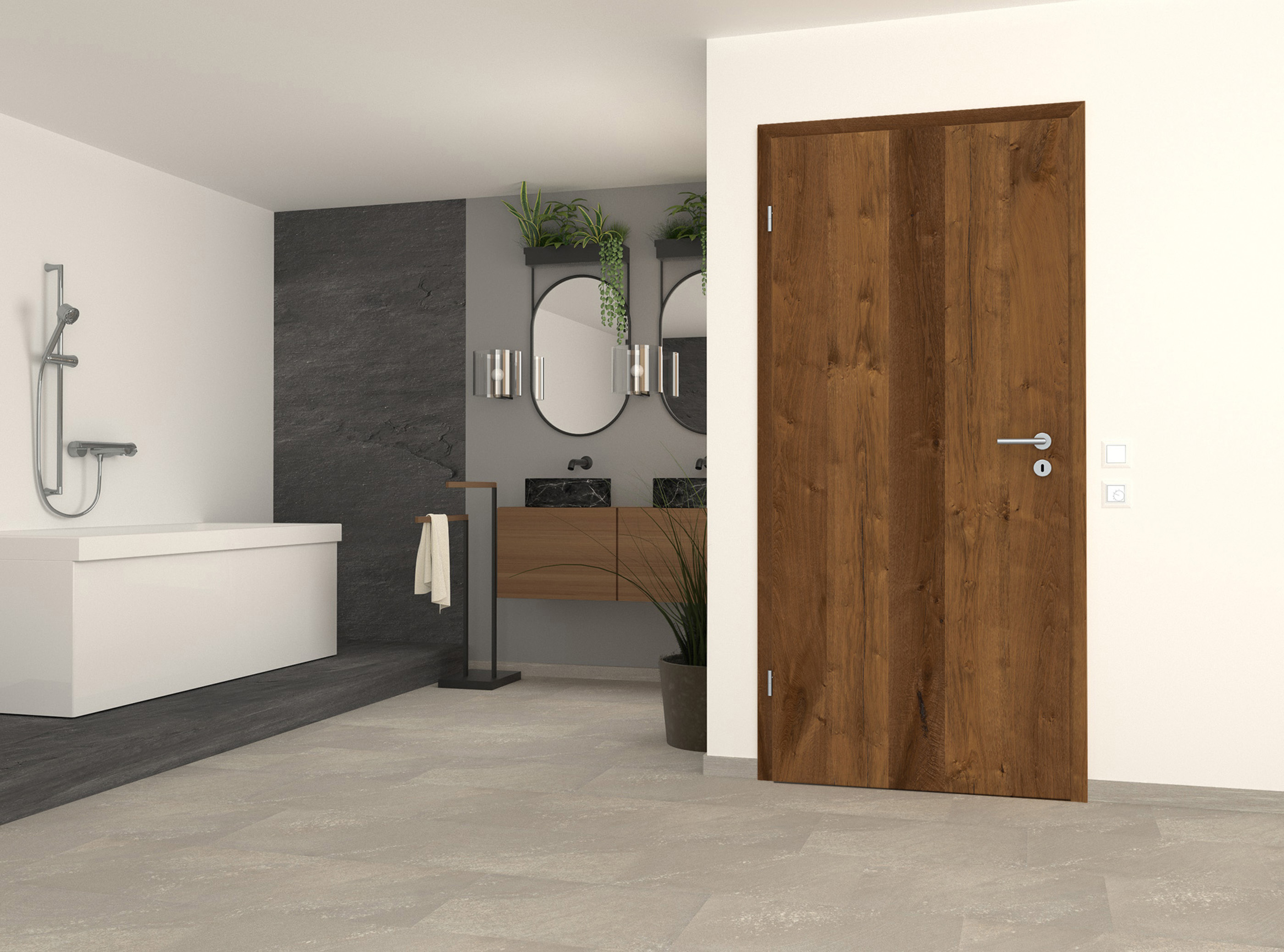 Charakterstarke Natur: Unsere Echtholztür Furnier Antik Eiche Bronze überzeugt mit markanten Astlöchern und Rissen, welche mit einem schwarzen Vlies hinterlegt sind. Dadurch entsteht eine einzigartige Optik und Haptik, wie sie aus der freien Natur bekannt ist. Die vertikale Zusammensetzung der Eichenfurniere erzeugt eine wildwüchsige und außergewöhnliche Längsoptik - mehr Natürlichkeit geht kaum. Das daraus resultierende lebhafte Farbspiel in warmen Brauntönen macht diese Innentür zu einem charakterstarken Unikat und zu einem Highlight in jedem Wohnraum. Die Mattlackierung erzeugt zudem eine sehr moderne Wirkung.