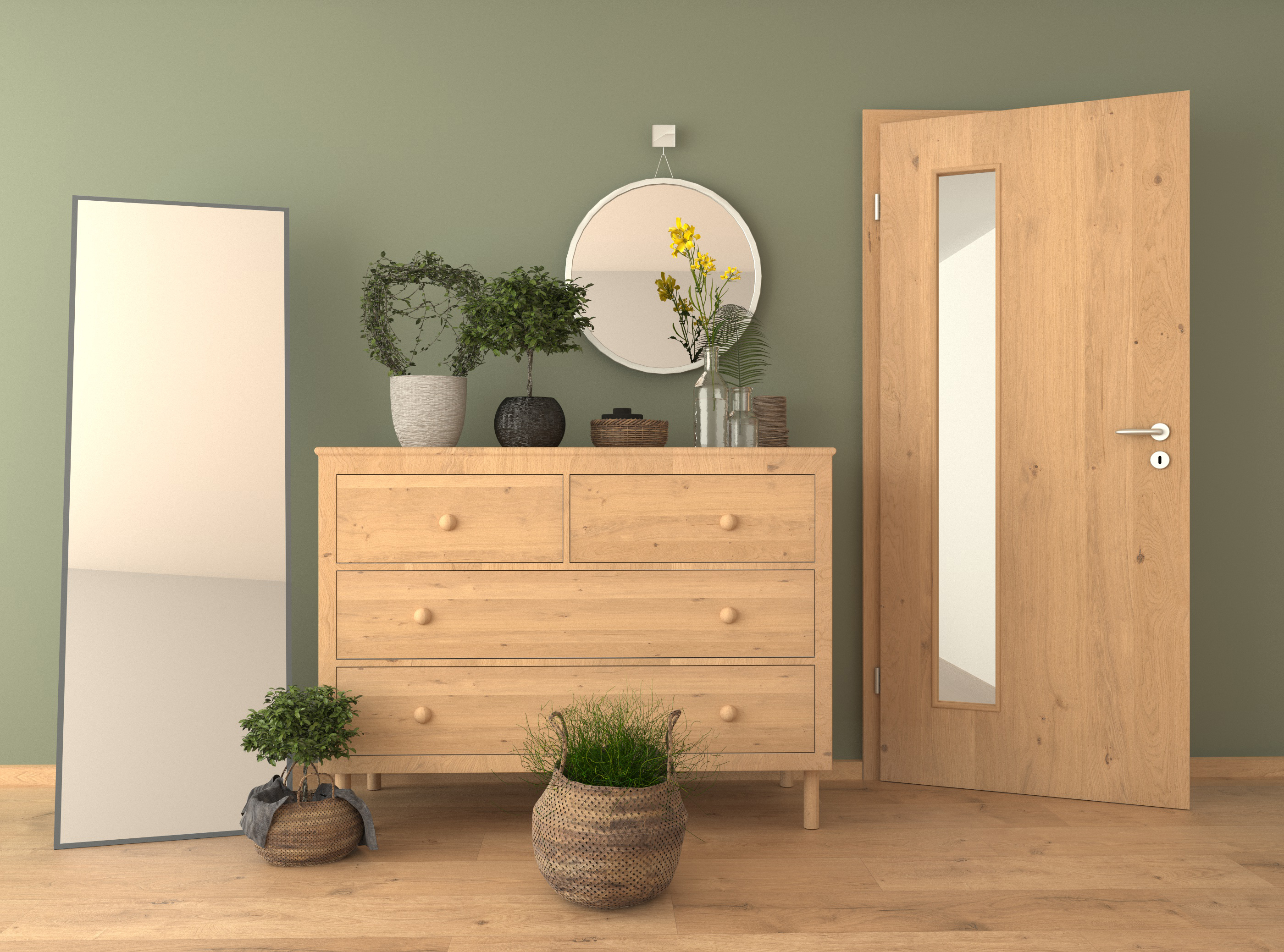 Individuelle Wuchsmerkmale: Unsere Echtholztür Furnier Asteiche Creme bietet einen warmen Beigeton mit einer Mattlackierung. Das astige Edelfurnier in Längsoptik überzeugt mit einem modernen und markanten Erscheinungsbild. Durch das rustikale Holzbild wird die natürliche Eleganz des Eichenholzes unterstrichen und dadurch ein besonders lebendiges Wohngefühl geschaffen. Das Türblatt verfügt über eine rechtwinklige Eckkante, die eine geradlinige und zeitlose Optik erzeugt. Die Oberfläche aus Echtholzfurnier macht jede Tür zu einem echten Unikat und steht für ein Höchstmaß an Natürlichkeit. Passend zur Tür führen wir auch Zargen Furnier Asteiche Creme im Sortiment. Für eine besonders natürliche Wohnatmosphäre empfehlen wir hierzu den Einsatz von Parkettböden.