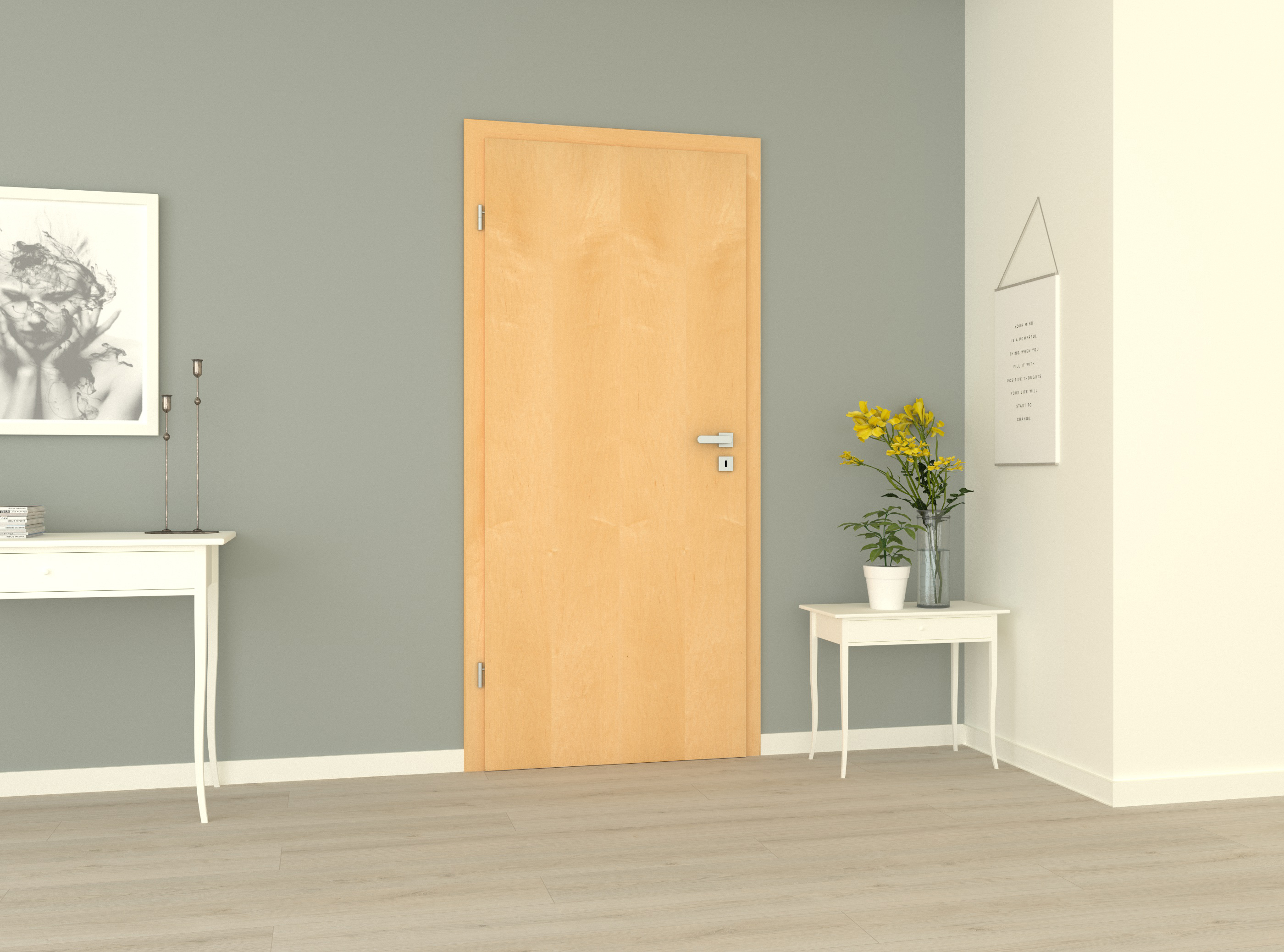 Natürlicher Klassiker: Unsere Echtholztür Furnier Klassik Ahorn bietet ein helles Design in Kombination mit einer Naturlackierung. Das Holz des weit verbreiteten Ahornbaumes hat einen gelblich, leicht grau-brauen Farbton und weist feine Poren sowie eine homogene Struktur auf. Das Türblatt verfügt über eine rechtwinklige Eckkante, die eine geradlinige und zeitlose Optik erzeugt. Die Oberfläche aus Echtholzfurnier macht jede Tür zu einem echten Unikat und steht für Natur pur. Passend zur Tür führen wir auch Zargen Furnier Klassik Ahorn im Sortiment. Für eine besonders natürliche Wohnatmosphäre empfehlen wir hierzu den Einsatz von Parkettböden.