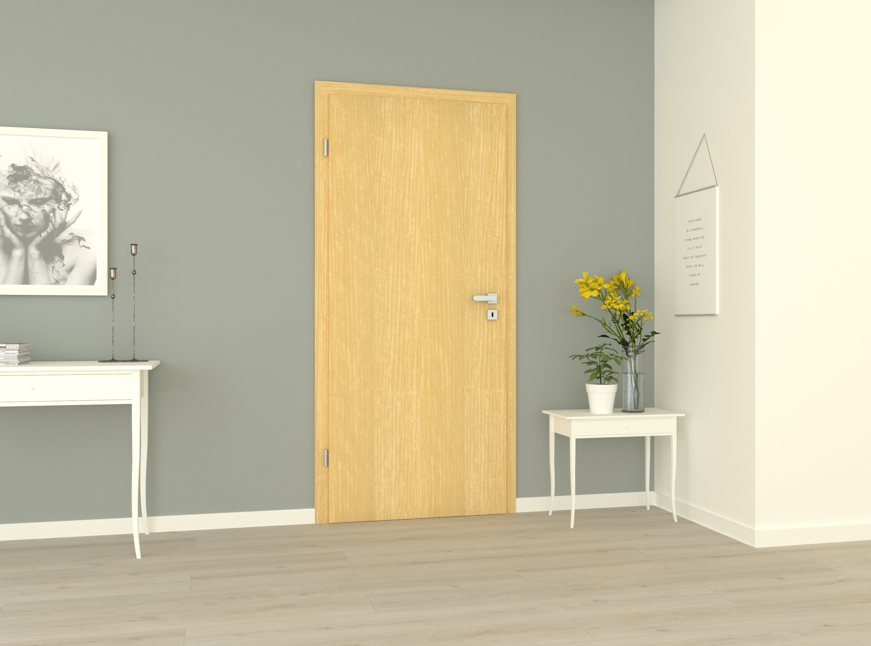 Natürlicher Klassiker: Unsere Echtholztür Furnier Klassik Limba bietet ein helles Design in Kombination mit einer Naturlackierung. Der Limbabaum, auch Weiße Myrobalane oder Koriana genannt, stammt aus Afrika und bietet ein blaßgelbbbraunes Holz mit einer gleichmäßigen Maserung. Das Türblatt verfügt über eine rechtwinklige Eckkante, die eine geradlinige und zeitlose Optik erzeugt. Die Oberfläche aus Echtholzfurnier macht jede Tür zu einem echten Unikat und steht für Natur pur. Passend zur Tür führen wir auch Zargen Furnier Klassik Limba im Sortiment. Für eine besonders natürliche Wohnatmosphäre empfehlen wir hierzu den Einsatz von Parkettböden.