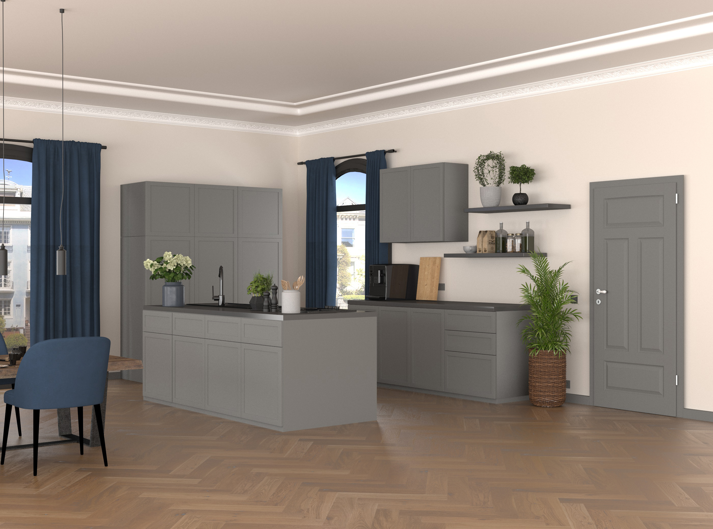 Nordisches Grau: Hamburgs Schönheit liegt in seinem Grau – nirgendwo sonst strahlt der Himmel so schön grau wie in der beliebten Stadt. Wie schön der Farbton strahlen kann und dass es nicht immer Weiß sein muss – das beweist unsere Hamburg. Die klassische Stiltür trifft dabei auf den zeitlosen Farbton Mineralgrau: Ein Design-Kontrast, der absolut harmonisch wirkt. Die graue Innentür Hamburg 4G AD besteht aus vier formgeprägten Kassetten und bietet eine Lackoberfläche im Farbton Mineralgrau, ähnlich RAL 7037. Das Türblatt verfügt über eine Designkante, die mit ihrem minimalen Kantenradius die moderne Optik betont. Passend zur Tür führen wir auch Zargen in Mineralgrau im Sortiment.
