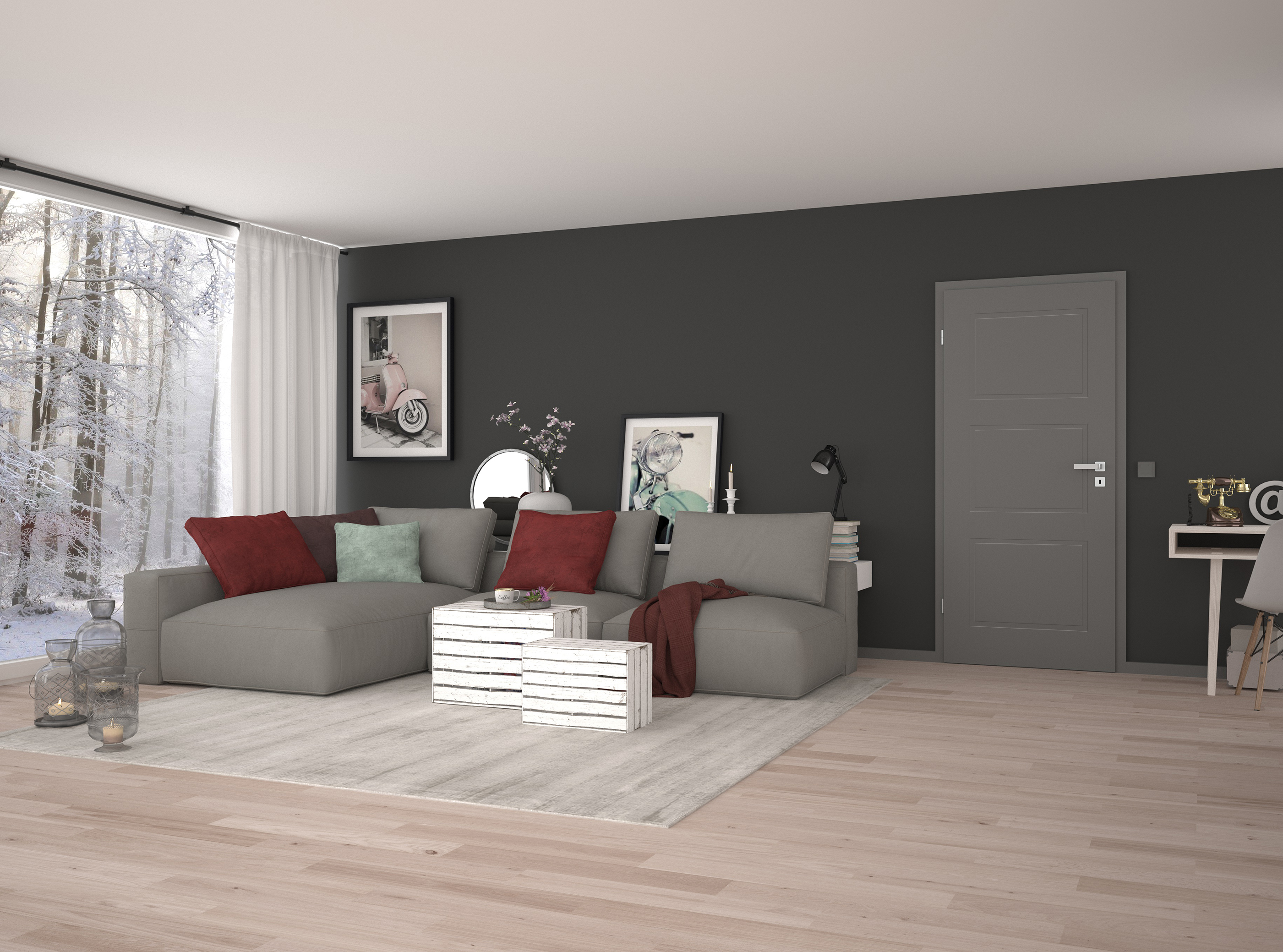 Grauer Trendsetter: Traditionell und konservativ – so wirkt die italienische Hauptstadt Rom auf dem ersten Blick, auf dem zweiten Blick hingegen versprüht sie ganz viel modernes Temperament und Lebensfreude. Auch unsere moderne graue Tür Roma 3G vereint beide Facetten. In Anlehnung an die klassische Stiltür, überzeugt sie mit einem modernen Design in Kombination mit dem zeitlosen Farbton Mineralgrau, ähnlich RAL 7037. 30 mm breite Rillen erzeugen eine moderne Kassettenoptik auf einer lackierten Oberfläche. Das Türblatt hat eine Designkante, die mit ihrem minimalen Kantenradius die moderne Optik betont. Passend zur Tür führen wir auch Zargen in Mineralgrau im Sortiment.