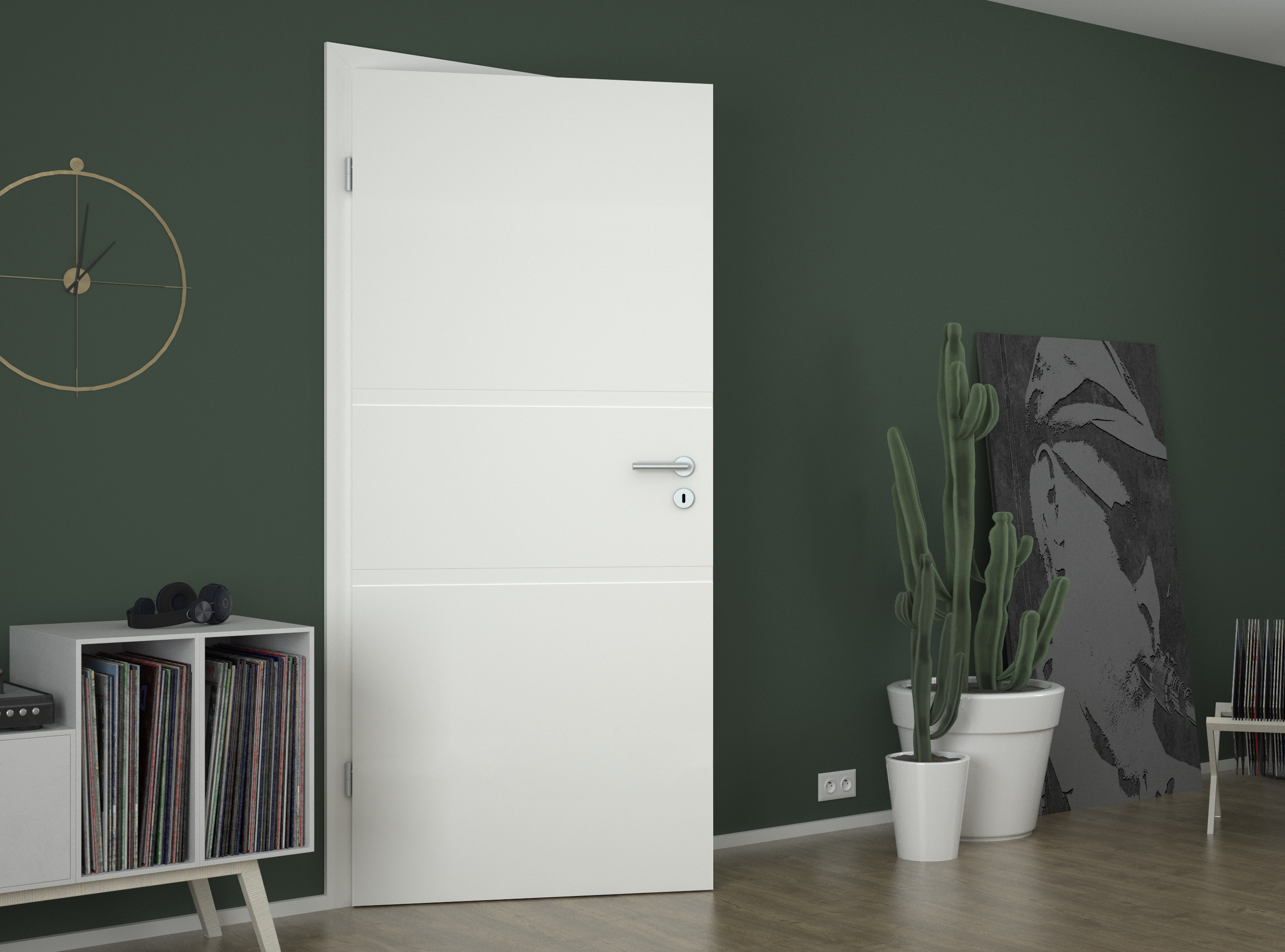 Zurückhaltend markant: Angenehm zurückhaltend zeigt sich das Zentrum der norditalienischen Stadt Modena, wie auch diese weiße Innentür mit einer Lackoberfläche in Weißlack 1.0, in Anlehnung an RAL 9010. Unsere Modena MO3 verfügt über zwei jeweils 40 mm breite und horizontal verlaufende Rillen. Dabei wirkt sie nur zurückhaltend, sondern ist mit ihren auffälligen Linien zudem ein echter Blickfang und eines der beliebtesten Designs. Das Türblatt mit rechtwinkliger Eckkante betont die geradlinige und zeitlose Optik. Passend zur Tür führen wir auch Zargen und Fußleisten im Farbton Weiß 9010 im Sortiment.