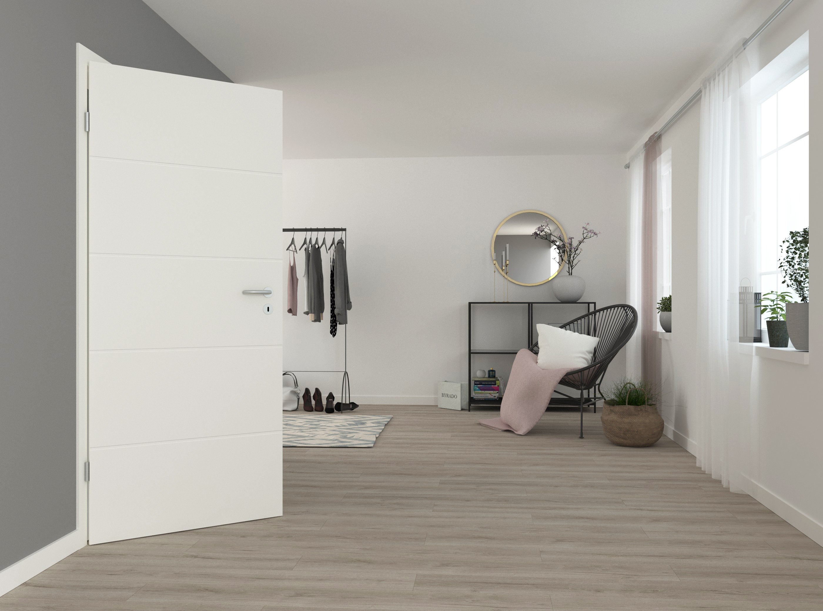 Ganz viel Amore: Die italienische Heimatstadt von Romeo und Julia besticht durch ihr besonderes Flair und gehört zu den schönsten Orten des Landes. Nicht umsonst trägt diese Türenserie den Namen Verona – geradliniges Design gepaart mit einer matt-weiß schimmernden Lackoberfläche in Weißlack 1.0, in Anlehnung an RAL 9010, machen sie zu einem eleganten Blickfang mit Wohlfühl-Charakter und zu einer der beliebtesten weißen Innentüren. Die Designtür Verona VO5 verfügt über vier jeweils 10 mm breite Rillen, die horizontal verlaufen und für eine harmonische Optik sorgen. Das Türblatt mit rechtwinkliger Eckkante betont das geradlinige und zeitlose Design. Passend zur Tür führen wir auch Zargen und Fußleisten im Farbton Weiß 9010 im Sortiment.