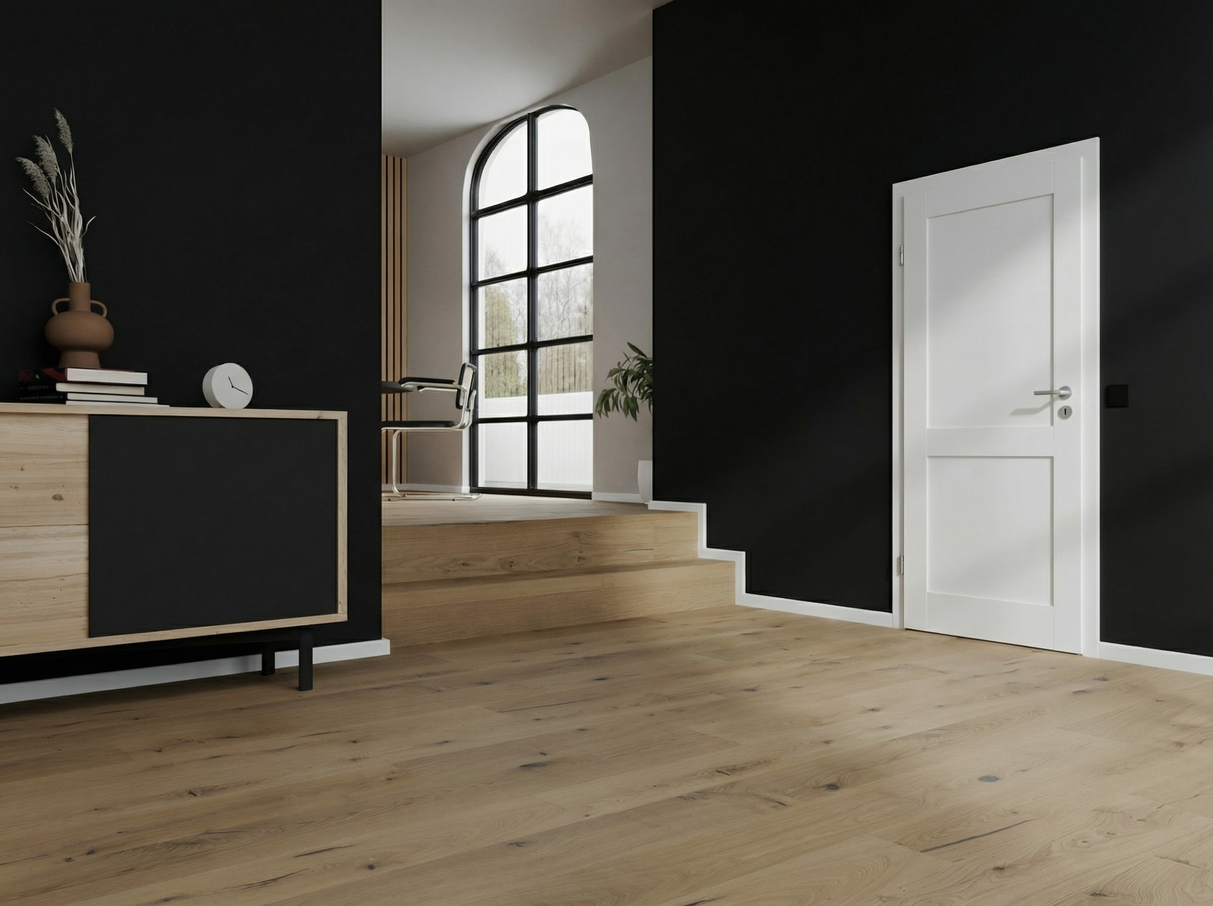 Unser Handwerksstück: Valencia ist eine spanische Trendstadt und überzeugt bei uns als moderne weiße Stiltür, die absolut den Zeitgeist trifft. In unserer hauseigenen Produktion gefertigt, bietet unsere Valencia 2G mit ihrer Riegelkonstruktion eine ganz besondere Optik. Im Farbton Weißlack 3.0, in Anlehnung an RAL 9003, lässt sich so optimal in moderne Raumkonzepte integrieren und harmoniert mit hochweißen Einrichtungselementen, die heutzutage vermehrt zum Einsatz kommen. Das Türblatt verfügt über eine Designkante, die mit ihrem minimalen Kantenradius die moderne Optik betont. Die Oberfläche aus CPL macht die Tür zudem besonders robust und langlebig. Passend zur Tür führen wir auch Zargen und Fußleisten im Farbton Weiß 9003 im Sortiment. Für einen modernen Kontrast zum Weiß empfehlen wir den Einsatz von schwarzen Beschlägen.