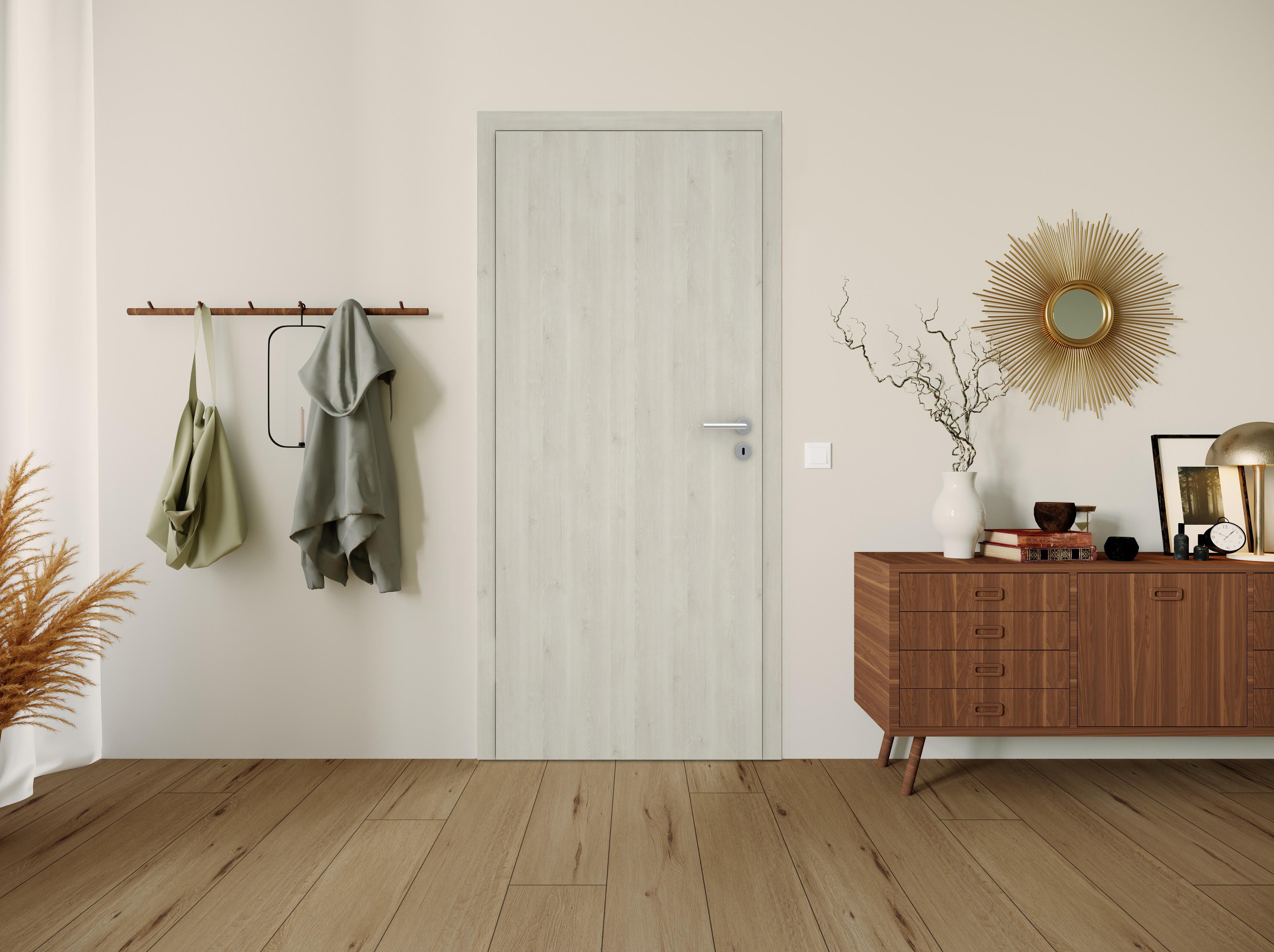 Helles Holzfeeling mit mediterranem Flair: Die Pinie ist eine italienische Kiefernart und hat ihren Ursprung im nördlichen Mittelmeer. Das Dekor wird zunehmend beliebter und besticht durch eine individuelle Maserung mit kleinen Astspuren. Das helle Design mit spürbarer Holzstruktur wirkt modern, ist robust und lässt sich einfach mit verschiedenen Wohnstilen und Wandfarben kombinieren. Als stumpfeinschlagende Tür, die eine einheitliche Fläche mit der Zarge bildet, wirkt das Design besonders modern und fügt sich dezent in den Wohnraum ein.