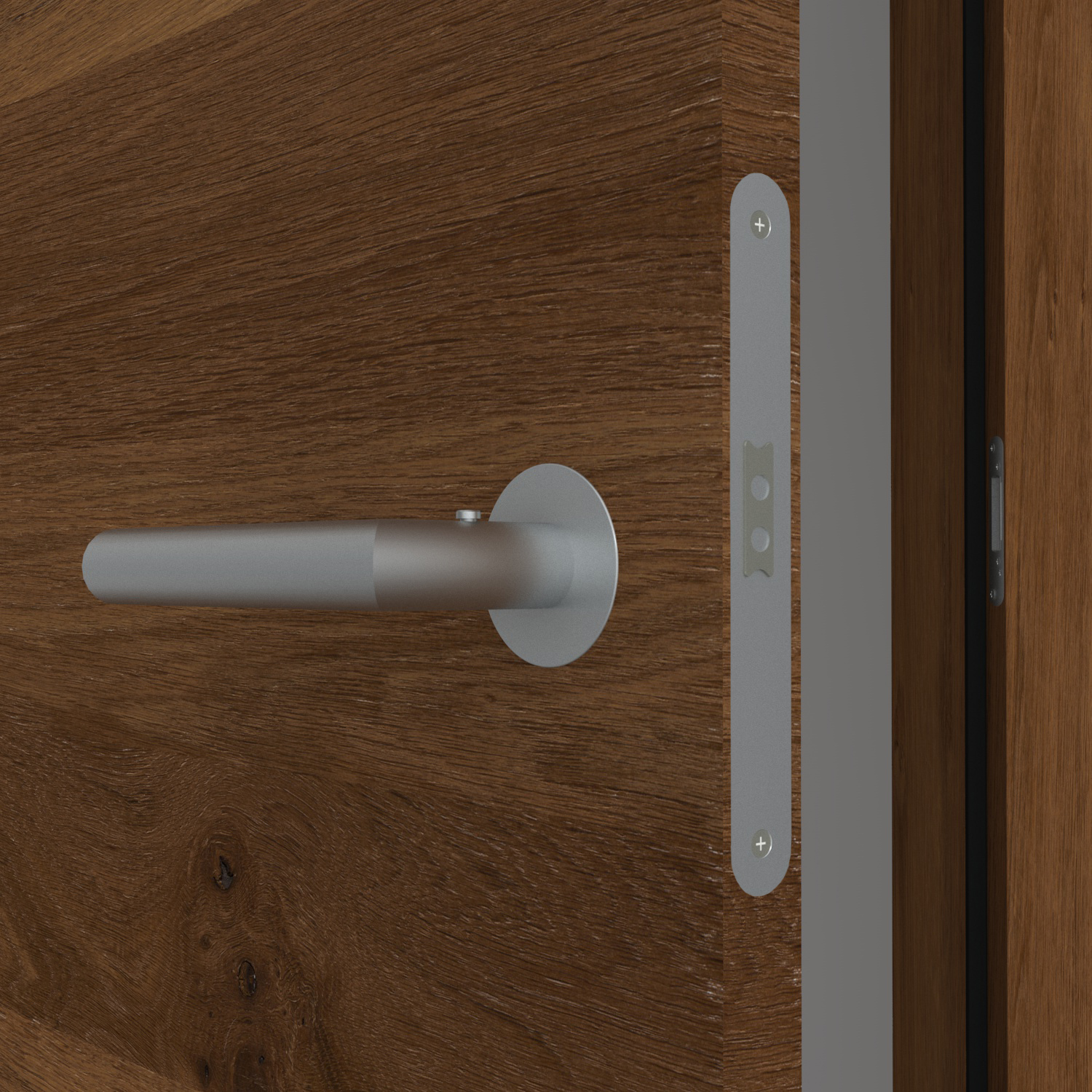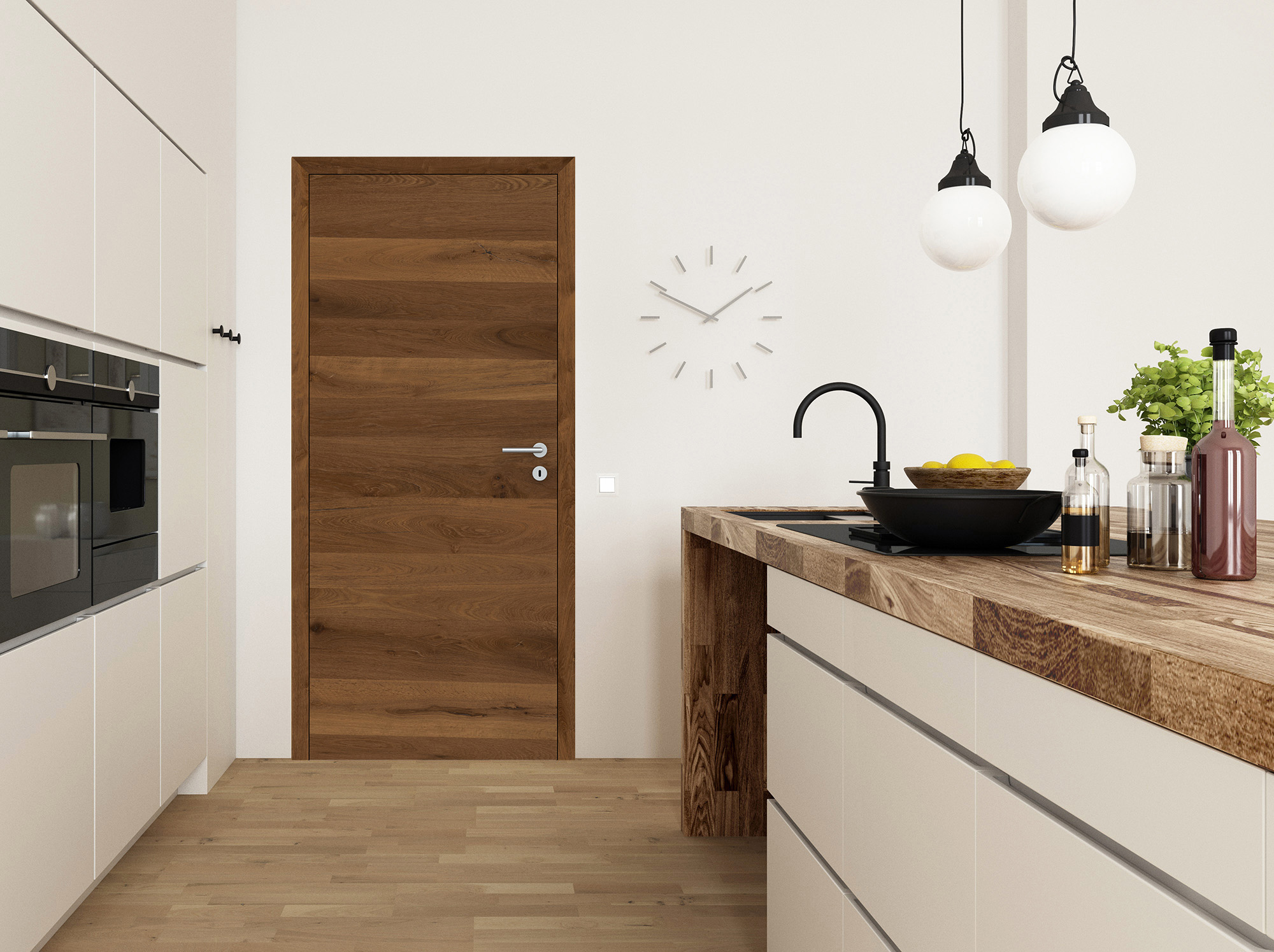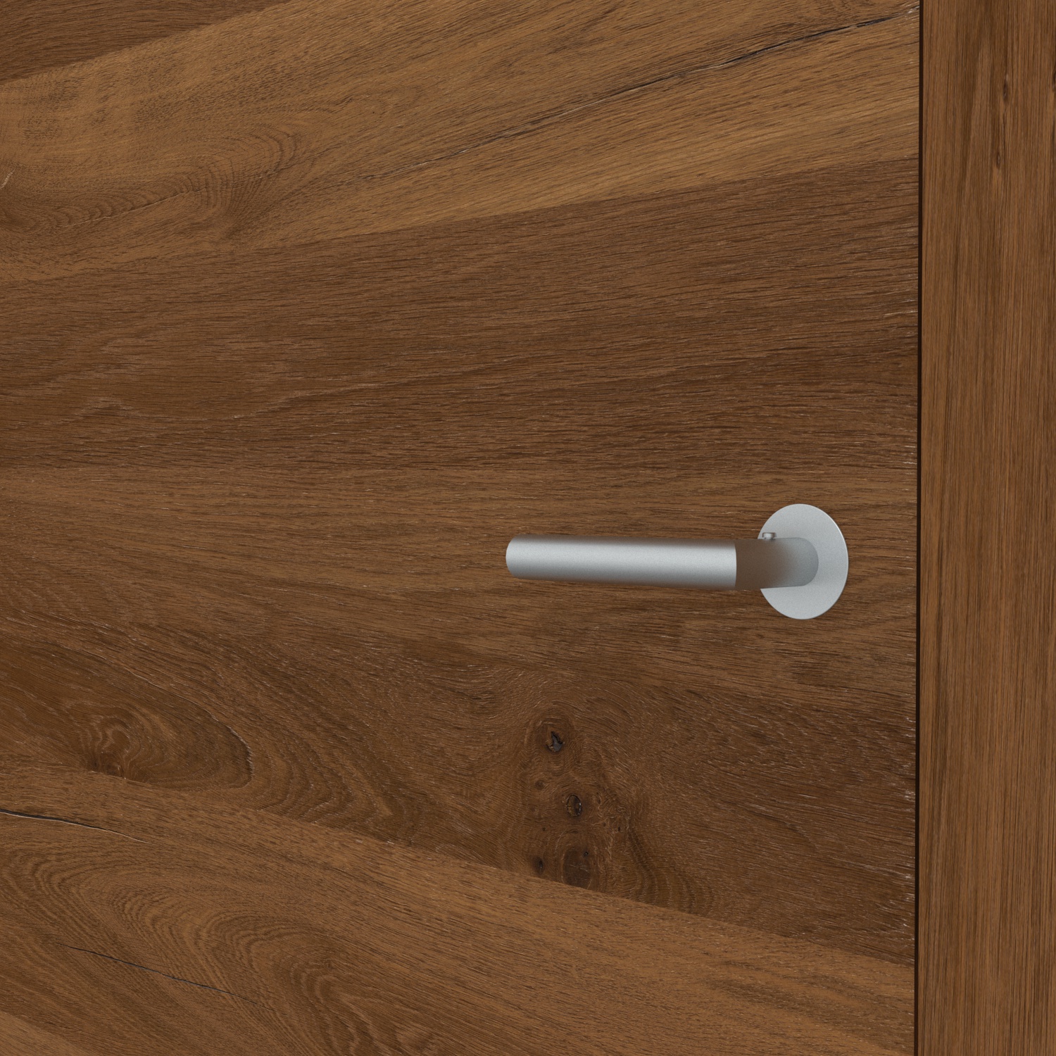 Charakterstarke Natur: Unsere Echtholztür Furnier Antik Eiche Bronze quer überzeugt mit markanten Astlöchern und Rissen, welche mit einem schwarzen Vlies hinterlegt sind. Dadurch entsteht eine einzigartige Optik und Haptik, wie sie aus der freien Natur bekannt ist. Die horizontale Zusammensetzung der Eichenfurniere erzeugt eine wildwüchsige und außergewöhnliche Queroptik - mehr Natürlichkeit geht kaum. Das daraus resultierende lebhafte Farbspiel in warmen Brauntönen macht diese Innentür zu einem charakterstarken Unikat und zu einem Highlight in jedem Wohnraum. Die Mattlackierung erzeugt zudem eine sehr moderne Wirkung. Als stumpfeinschlagende Tür schließt ihr Türblatt bündig mit der Zarge. Dementsprechend sind auch die Bänder nicht sichtbar. Hieraus entsteht eine besonders reduzierte und moderne Optik, die optimal mit dem minimalistischen Wohnstil harmoniert. Angeboten wird die Innentür als Element mit passender Zarge.