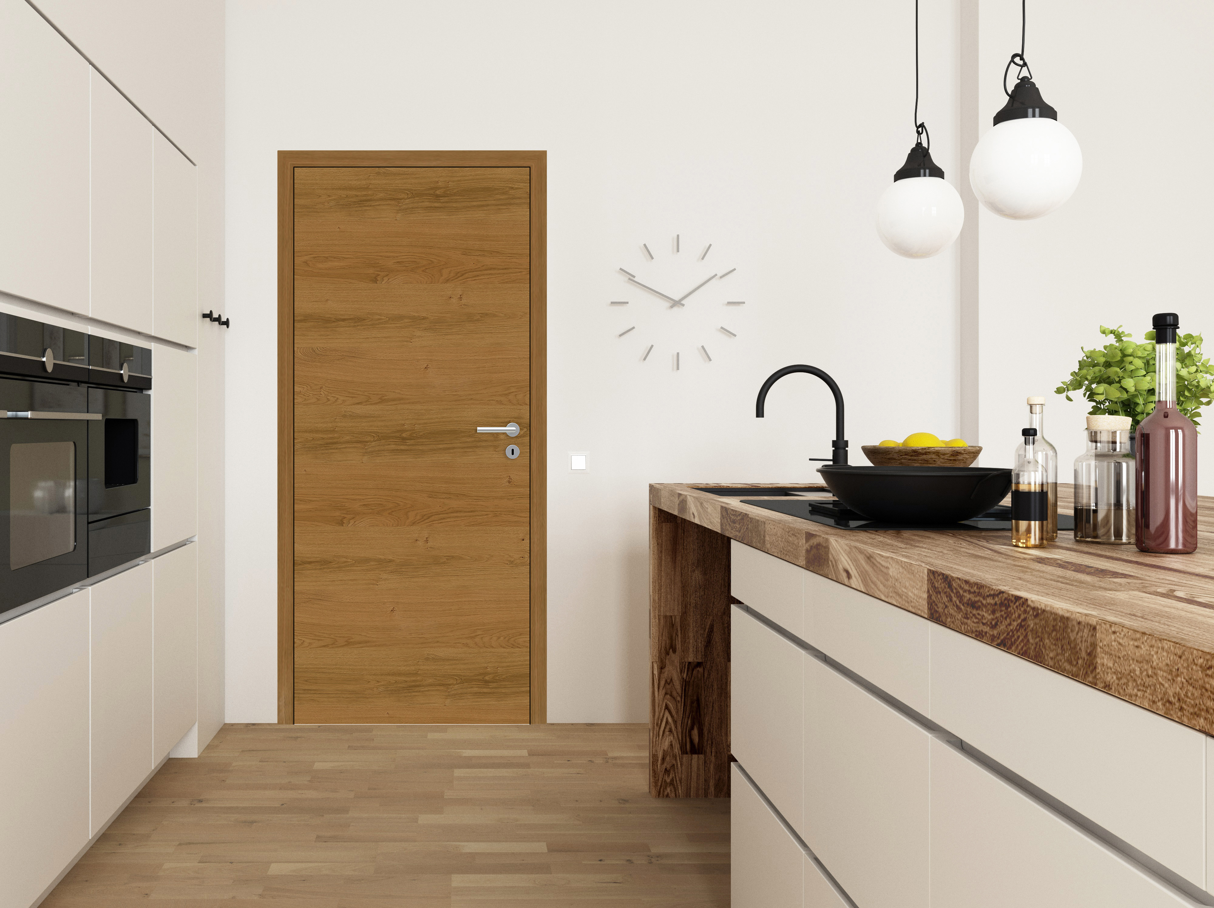 Individuelle Wuchsmerkmale: Unser astiges Edelfurnier überzeugt mit einem modernen und markanten Erscheinungsbild. Durch das rustikale Holzbild wird die natürliche Eleganz des Eichenholzes dieser Echtholztür unterstrichen und dadurch ein besonders lebendiges Wohngefühl geschaffen. Als stumpfeinschlagende Tür, die eine einheitliche Fläche mit der Zarge bildet, wirkt das Design besonders modern und fügt sich dezent in den Wohnraum ein.