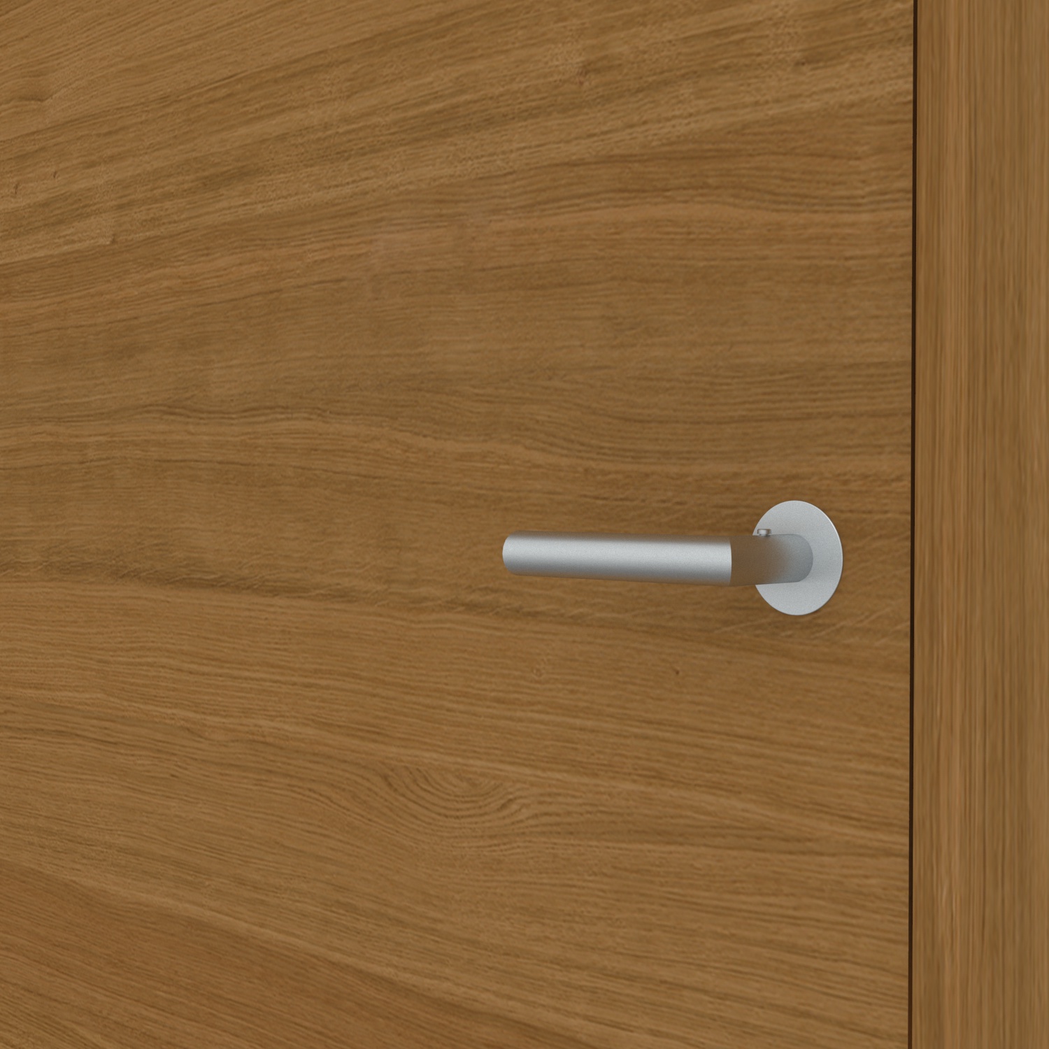 Optische Gliederung: Furniere sind dünne Holzblätter – beim Schneiden des Baumstammes werden die individuellen Wuchsmerkmale Blatt für Blatt freigelegt. Die besondere Streifen-Optik entsteht dadurch, dass die Furnierblätter nebeneinandergelegt und verleimt werden. Das Verfahren ist dadurch besonders nachhaltig, da hier kaum Ausschuss entsteht. Gleichzeitig wirkt die Echtholztür dadurch aber auch besonders exklusiv. Als stumpfeinschlagende Tür, die eine einheitliche Fläche mit der Zarge bildet, wirkt das Design besonders modern und fügt sich dezent in den Wohnraum ein.