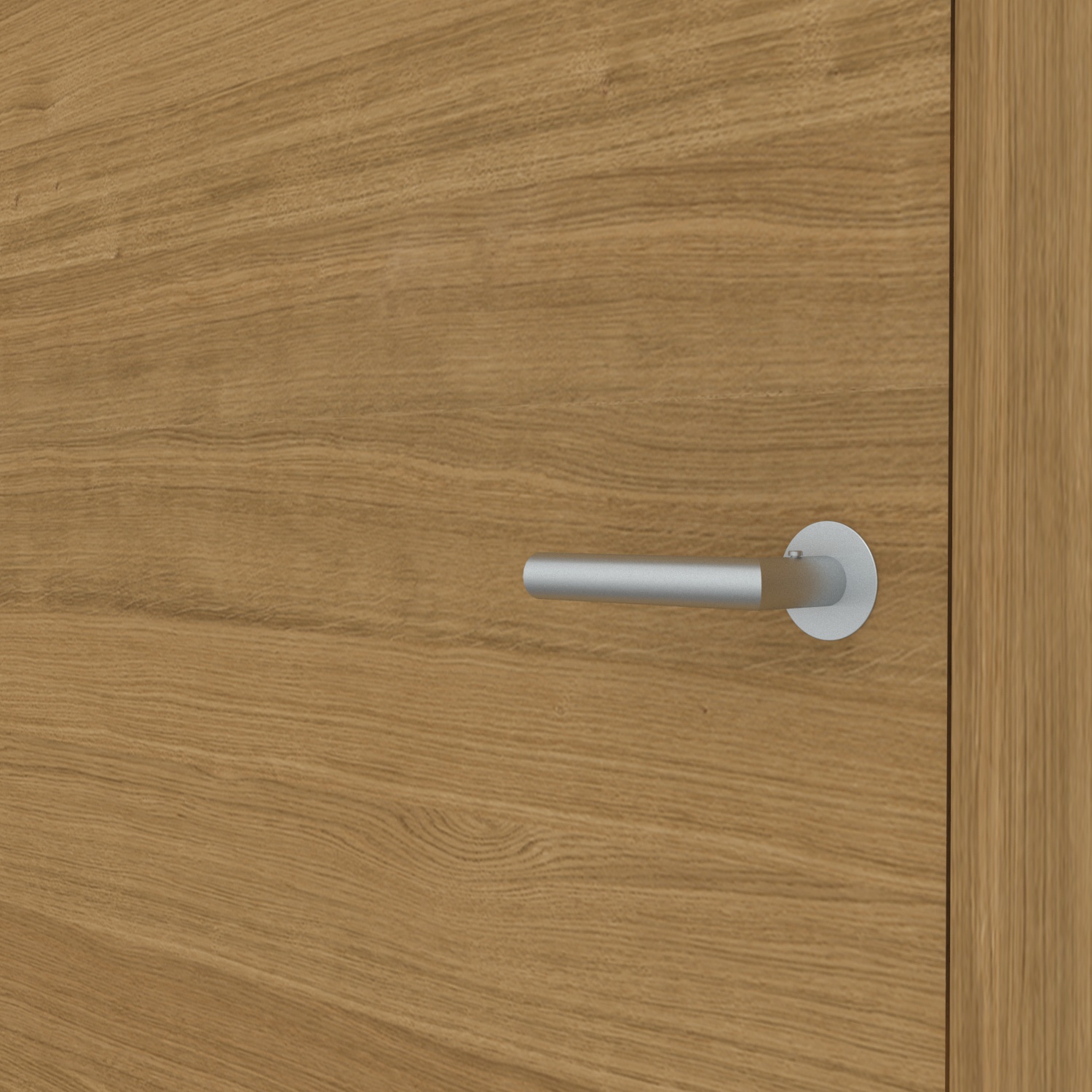 Optische Gliederung: Furniere sind dünne Holzblätter – beim Schneiden des Baumstammes werden die individuellen Wuchsmerkmale Blatt für Blatt freigelegt. Die besondere Streifen-Optik entsteht dadurch, dass die Furnierblätter nebeneinandergelegt und verleimt werden. Das Verfahren ist dadurch besonders nachhaltig, da hier kaum Ausschuss entsteht. Gleichzeitig wirkt die Echtholztür dadurch aber auch besonders exklusiv. Als stumpfeinschlagende Tür, die eine einheitliche Fläche mit der Zarge bildet, wirkt das Design besonders modern und fügt sich dezent in den Wohnraum ein.