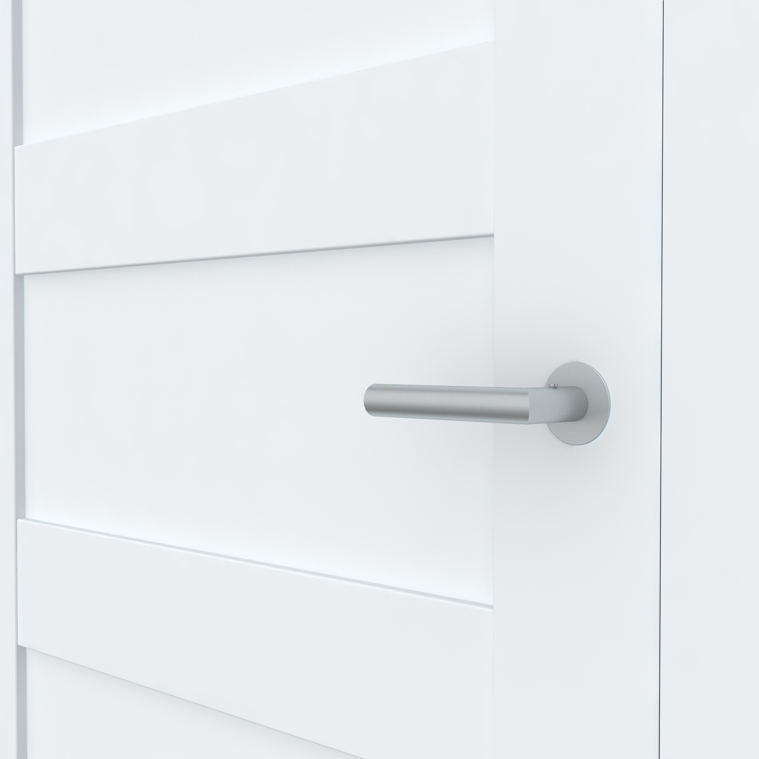 Unser Handwerksstück: Valencia ist eine spanische Trendstadt und überzeugt bei uns als moderne weiße Stiltür, die absolut den Zeitgeist trifft. In unserer hauseigenen Produktion gefertigt, bietet unsere Valencia 5GQ mit ihrer Riegelkonstruktion und den fünf Feldern eine ganz besondere Ästhetik. Als stumpfeinschlagende Tür bietet sie ein flächenbündiges Design zwischen Türblatt und Zarge, wodurch eine besonders minimalistische und moderne Optik ohne sichtbare Bänder geschaffen wird. Im Farbton Weißlack 3.0, in Anlehnung an RAL 9003, lässt sich so optimal in moderne Raumkonzepte integrieren und harmoniert mit hochweißen Einrichtungselementen, die heutzutage vermehrt zum Einsatz kommen. Das Türblatt verfügt über eine Designkante, die mit ihrem minimalen Kantenradius die moderne Optik betont. Die Oberfläche aus CPL macht die Tür zudem besonders robust und langlebig. Passend zur Tür führen wir auch Zargen und Fußleisten im Farbton Weiß 9003 im Sortiment. Für einen modernen Kontrast zum Weiß empfehlen wir den Einsatz von schwarzen Beschlägen.