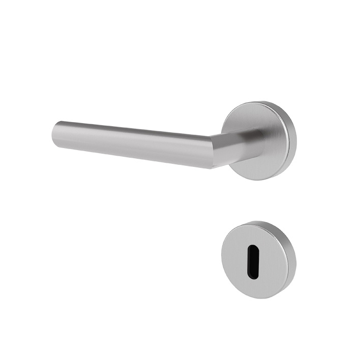 Schlichtes Design: Unser Türgriff Java wirkt schlicht und geradlinig. Die klare L-Form des Drückers endet in einer runden Rosette. Die Oberfläche ist aufgrund des matt gebürsteten Edelstahls leicht griffig, besonders robust und sorgt dafür, dass kaum Abdrücke hinterlassen werden. Optional verfügt dieser Türgriff über die innovative Schließtechnik EasyLock, bei der auf eine Schlüsselrosette verzichtet werden kann, wodurch ein besonders minimalistisches Design erzeugt wird.