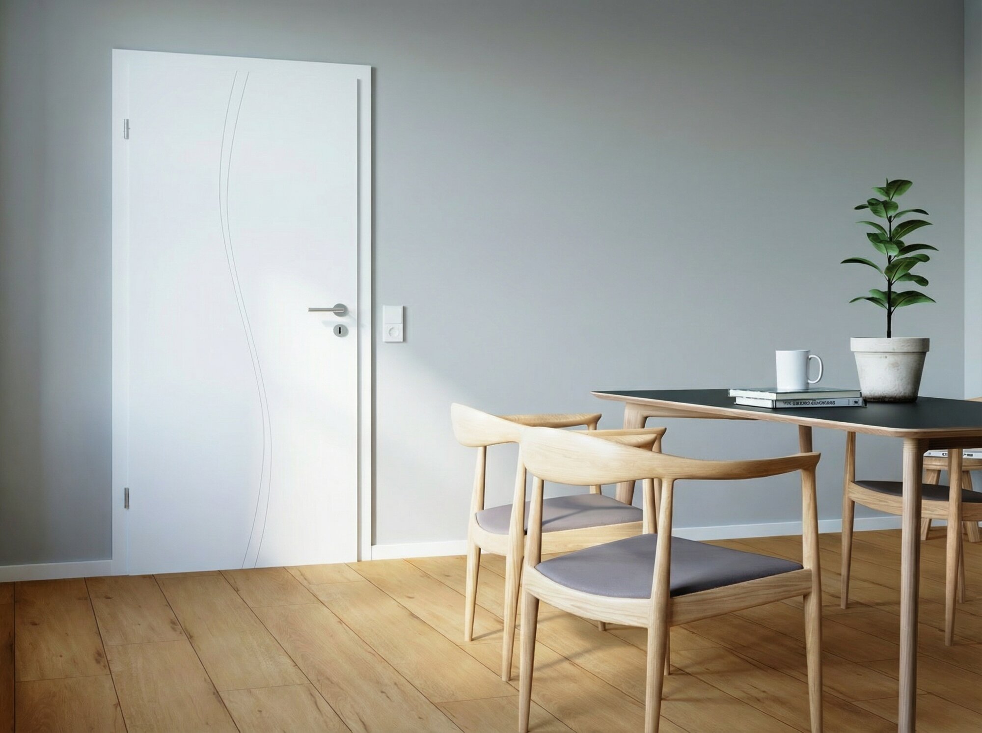 La Superba - die Stolze: Genua ist eine moderne und maritime Stadt im Norden Italiens. Feine 3 mm Rillenfräsungen verleihen unserer Genua eine schlichte, aber auch erfrischende Eleganz, weshalb sie auch zu den beliebtesten weißen Innentüren zählt. Unsere Genua GA8 verfügt dabei über drei vertikale und geschwungene Linien, die mittig auf dem Türblatt verlaufen und so für einen besonderen Blickfang sorgen. Die lackierte Oberfläche strahlt in einem der weißesten Weißtöne in Anlehnung an RAL 9003. Das Türblatt verfügt über eine Designkante, die mit ihrem minimalen Kantenradius das moderne Design betont. Passend zur Tür führen wir auch Zargen und Fußleisten im Farbton Weiß 9003 im Sortiment. Für einen modernen Kontrast zum Weiß empfehlen wir den Einsatz von schwarzen Beschlägen.