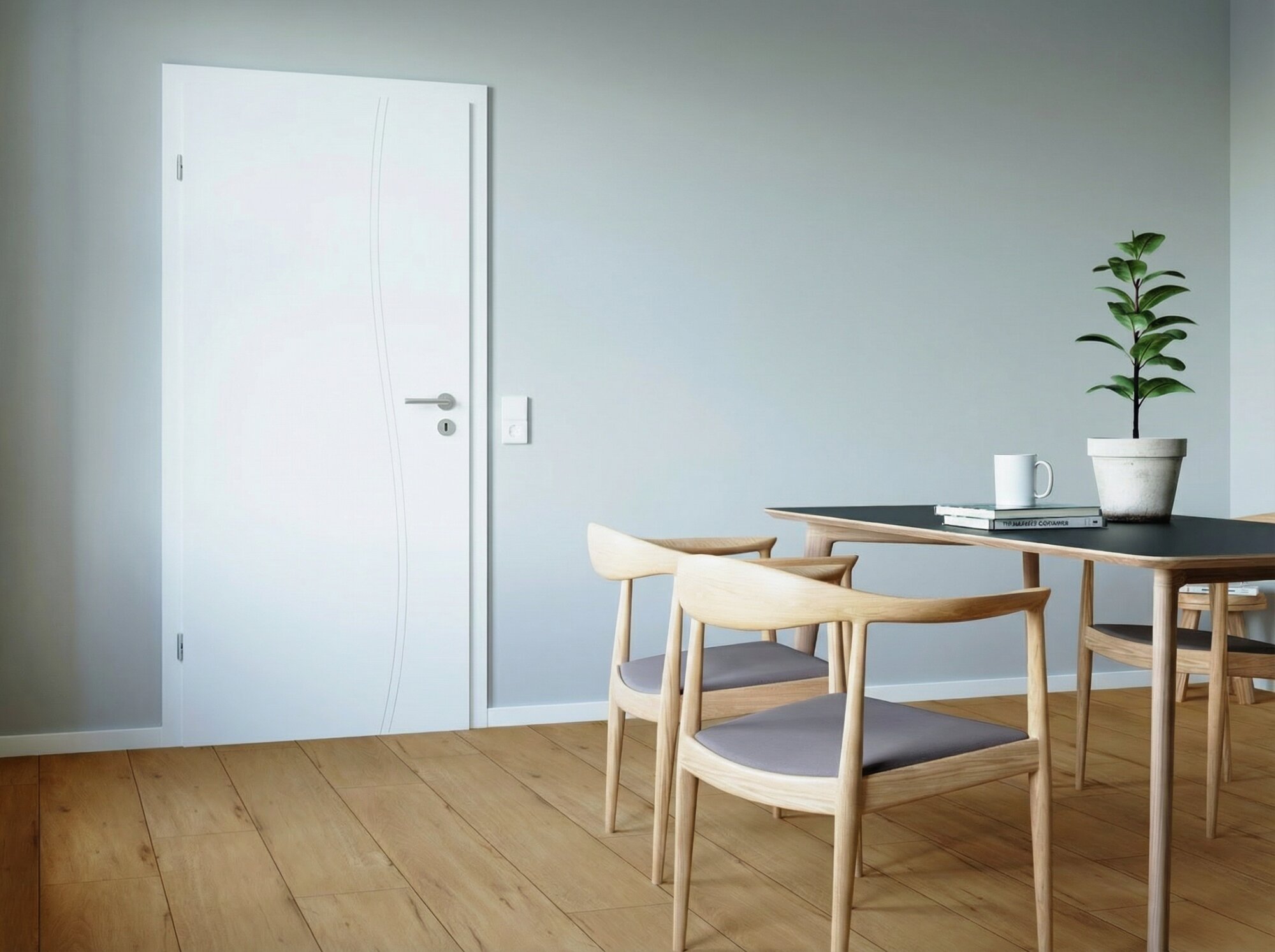 La Superba - die Stolze: Genua ist eine moderne und maritime Stadt im Norden Italiens. Feine 3 mm Rillenfräsungen verleihen unserer Genua eine schlichte, aber auch erfrischende Eleganz, weshalb sie auch zu den beliebtesten weißen Innentüren zählt. Unsere Genua GA8 verfügt dabei über drei vertikale und leicht geschwungene Linien, die für einen besonderen Blickfang sorgen. Die lackierte Oberfläche strahlt in einem der weißesten Weißtöne in Anlehnung an RAL 9003. Das Türblatt verfügt über eine Designkante, die mit ihrem minimalen Kantenradius das moderne Design betont. Passend zur Tür führen wir auch Zargen und Fußleisten im Farbton Weiß 9003 im Sortiment. Für einen modernen Kontrast zum Weiß empfehlen wir den Einsatz von schwarzen Beschlägen.
