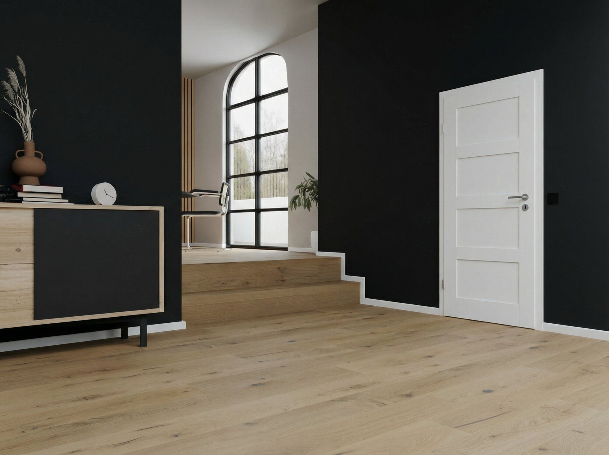 Unser Handwerksstück: Valencia ist eine spanische Trendstadt und überzeugt bei uns als moderne weiße Stiltür, die absolut den Zeitgeist trifft. In unserer hauseigenen Produktion gefertigt, bietet unsere Valencia 4GQ mit ihrer Riegelkonstruktion und den vier Feldern eine ganz besondere Optik. Im Farbton Weißlack 3.0, in Anlehnung an RAL 9003, lässt sich so optimal in moderne Raumkonzepte integrieren und harmoniert mit hochweißen Einrichtungselementen, die heutzutage vermehrt zum Einsatz kommen. Das Türblatt verfügt über eine Designkante, die mit ihrem minimalen Kantenradius die moderne Optik betont. Die Oberfläche aus CPL macht die Tür zudem besonders robust und langlebig. Passend zur Tür führen wir auch Zargen und Fußleisten im Farbton Weiß 9003 im Sortiment. Für einen modernen Kontrast zum Weiß empfehlen wir den Einsatz von schwarzen Beschlägen.