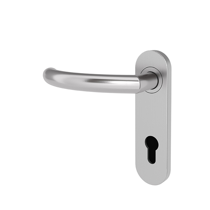 Extrahalt: Durch die besondere Formgebung bietet der Türgriff Langeoog 4 FS zusätzlichen Halt. Der Türdrücker ohne Hochhaltefeder mündet in ein rundes Kurzschild. Die festdrehbar gelagerte Klipprosette sorgt für eine stabile und langlebige Nutzung. Die Oberfläche aus matt gebürstetem Edelstahl bietet eine angenehme Haptik, ist äußerst widerstandsfähig und reduziert Fingerabdrücke. Diese Drückergarnitur ist gemäß DIN 18273 und EN 1906 geprüft, entspricht der Beanspruchungsklasse IV und erfüllt damit höchste Anforderungen an Brand- und Feuerschutz. Zusätzlich ist das Schloss mit einem Profilzylinder ausgestattet, was für erhöhte Sicherheit und vielseitige Einsatzmöglichkeiten sorgt.