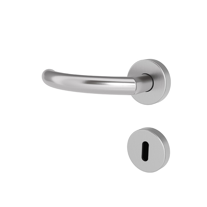 Extra Halt: L wie Langeoog und leichtgebogene L-Form. Durch diese besondere Formgebung bietet dieser Türgriff zusätzlichen Griffhalt. Die Oberfläche ist aufgrund des matt gebürsteten Edelstahls leicht griffig, besonders robust und sorgt dafür, dass kaum Abdrücke hinterlassen werden. Geprüft nach EN 1906/2010 Klasse 4/7.