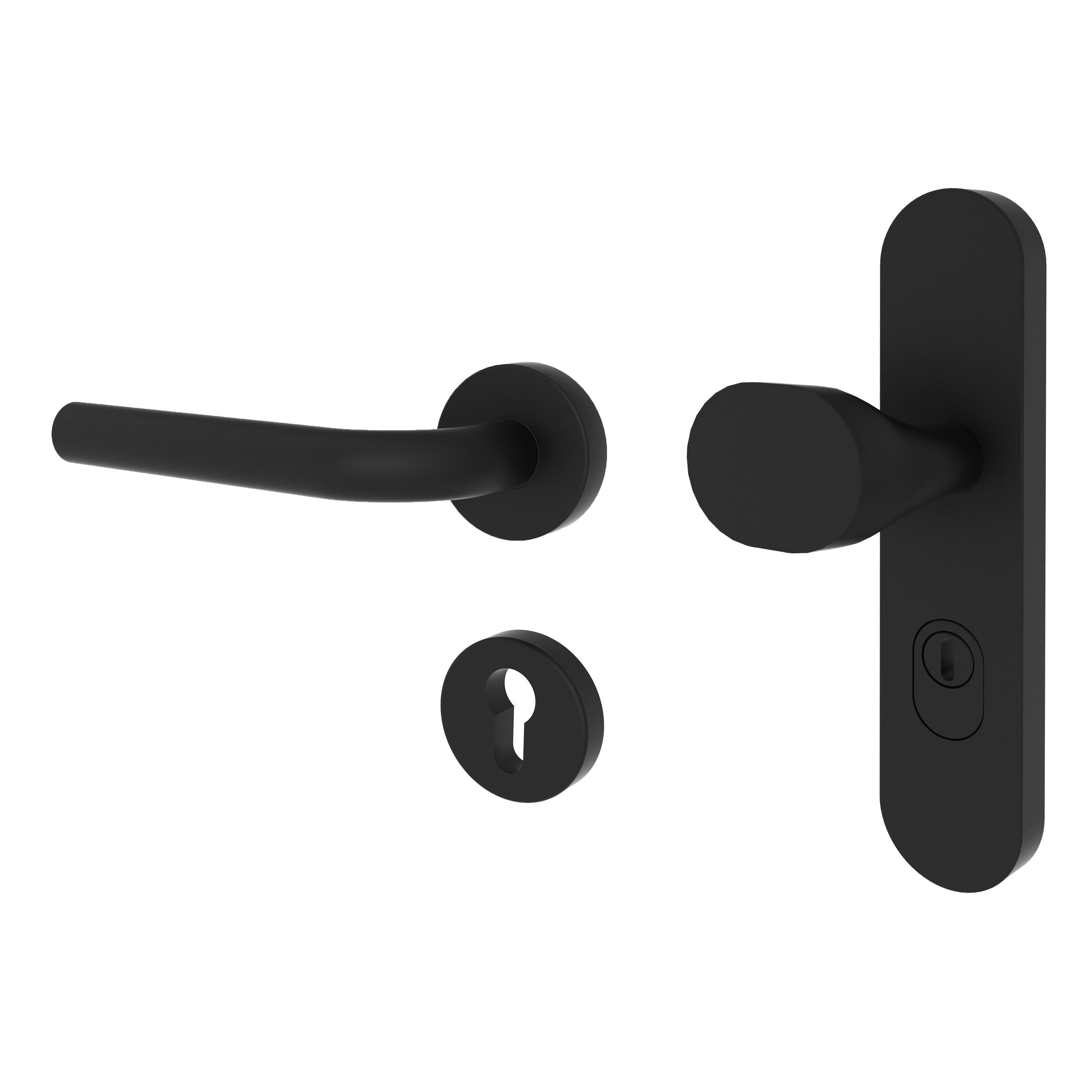 Runde Sache: Juist wirkt modern und unaufdringlich. Das schlichte Design mit der abgerundeten L-Form sorgt für ein angenehmes Griffgefühl. Die mattschwarze Oberfläche sorgt für eine moderne Optik und harmoniert optimal mit den aktuellen Wohntrends. Die Schutzgarnitur mit einem massiven runden Langschild verfügt über einen einseitigen Türknauf mit Kernziehschutz sowie einer einseitigen, runden Rosettengarnitur. Geprüft nach DIN 18257-ES1 und DIN EN1906-EN2.