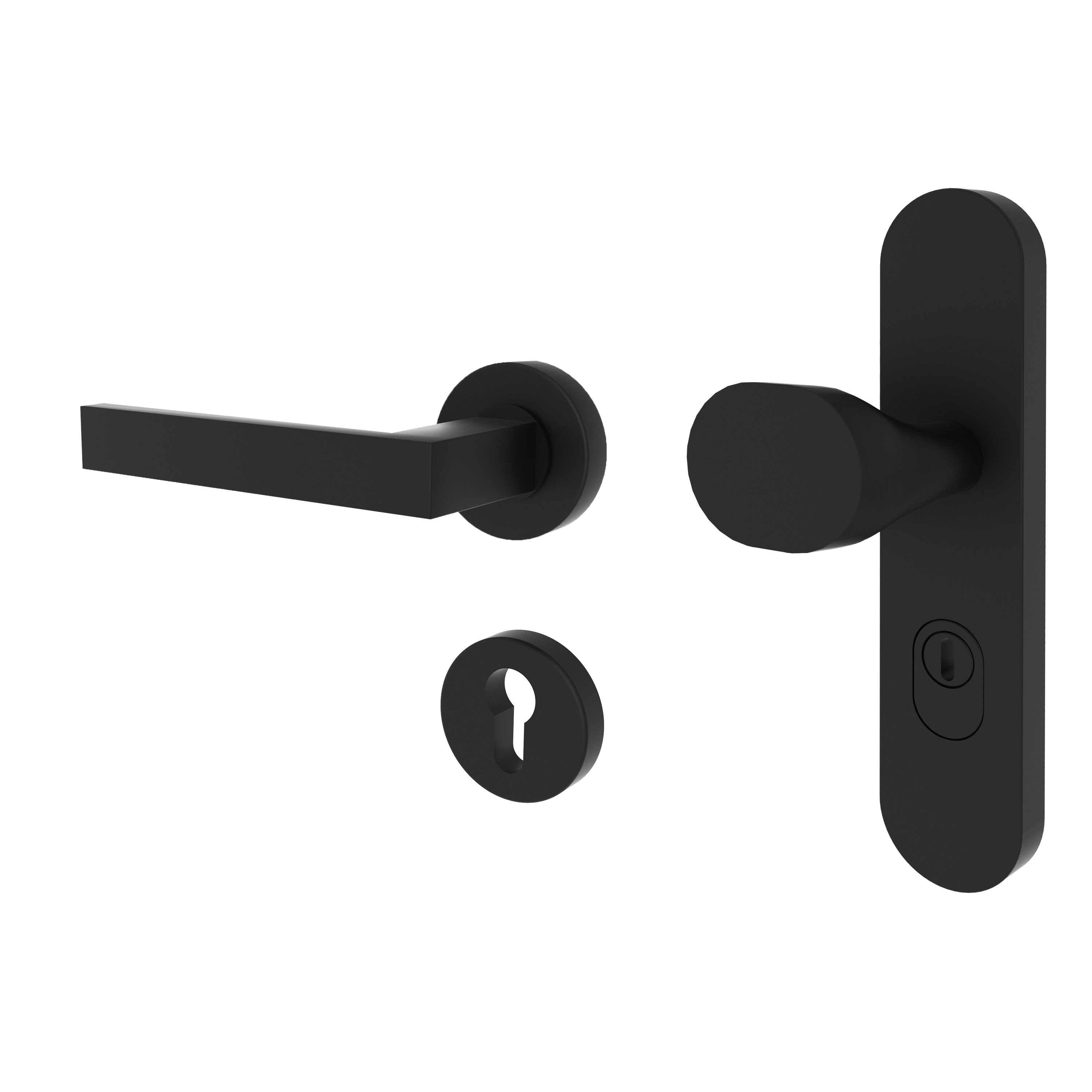 Eckiges Design: Unser Türgriff Rhodos bietet massives, aber dennoch stilvollen Design. Gleichzeitig ist er mit seiner Geradlinigkeit und den klaren Konturen der optimale Begleiter für den puristischen Wohnstil. Die mattschwarze Oberfläche sorgt für eine moderne Optik und harmoniert optimal mit den aktuellen Wohntrends. Die Schutzgarnitur mit einem massiven runden Langschild verfügt über einen einseitigen Türknauf mit Kernziehschutz sowie einer einseitigen, runden Rosettengarnitur. Geprüft nach DIN 18257-ES1 und DIN EN1906-EN2.
