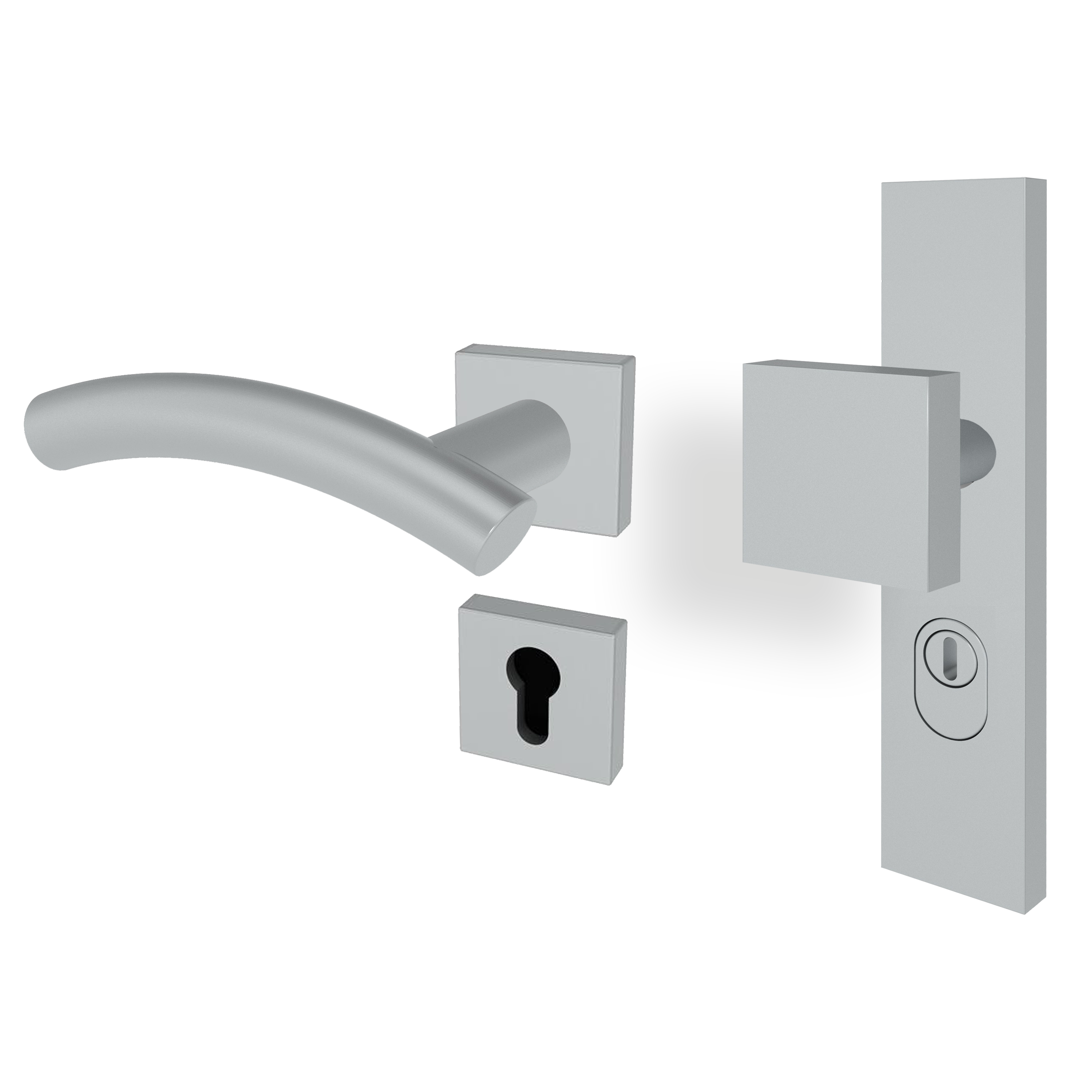 Exklusives Design: Sylt stellt mit seiner geschwungenen und asymmetrischen Form einen echten Blickfang dar. Die Oberfläche ist aufgrund des matt gebürsteten Edelstahls leicht griffig, besonders robust und sorgt dafür, dass kaum Abdrücke hinterlassen werden. Die Schutzgarnitur mit einem massiven eckigen Langschild verfügt über einen einseitigen Türknauf mit Kernziehschutz sowie einer einseitigen, eckigen Rosettengarnitur. Geprüft nach DIN 18257-ES1 und DIN EN1906-EN2.