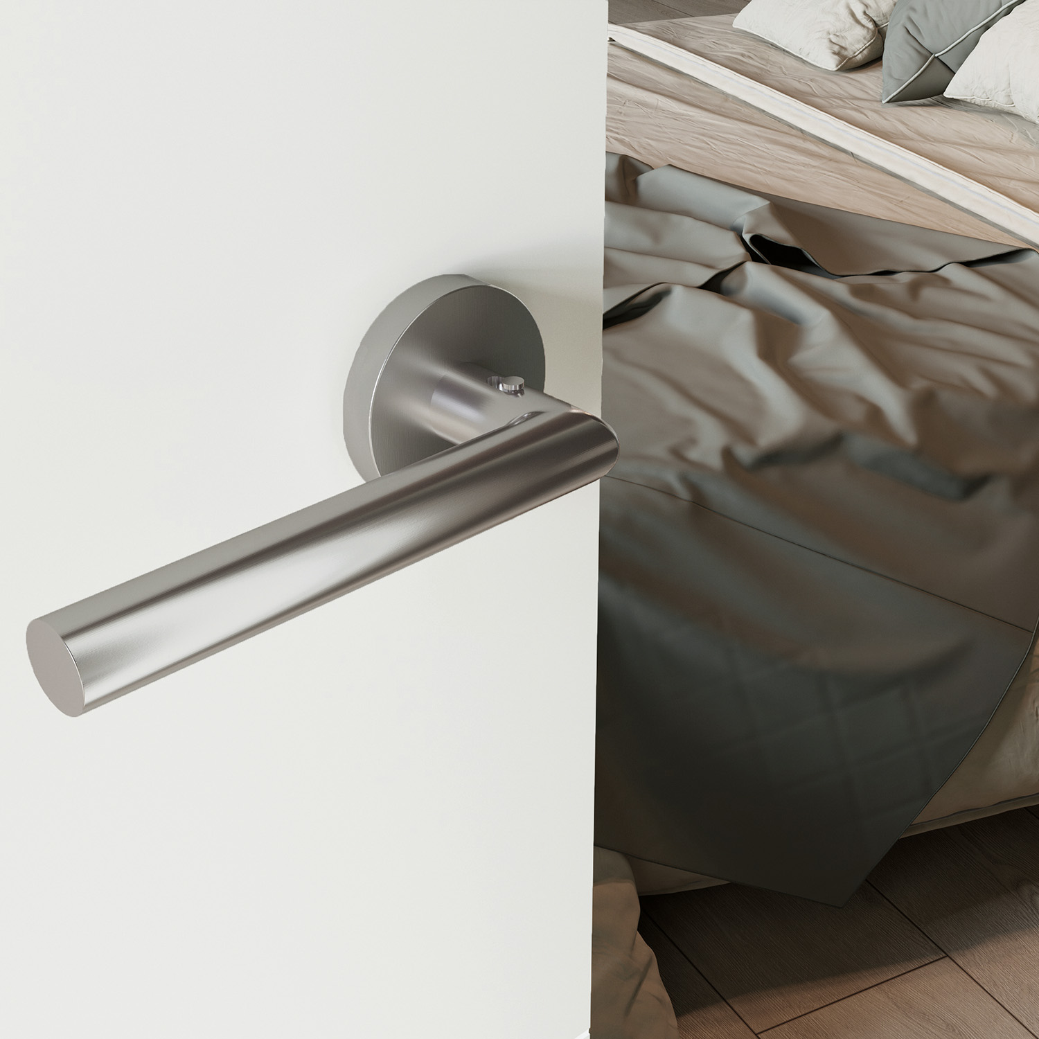 Privatsphäre mit nur einem Klick! Durch die in den Türgriff integrierte und intelligente Schließmechanik lassen sich Innentüren besonders einfach mit nur einer Hand verriegeln, was über eine rote Anzeige signalisiert wird. Das Design mit runder Drückerrosette und ohne Schlüsselrosette ist sehr modern und sorgt für ein minimalistisches Gesamtbild. Die Oberfläche in Edelstahl ist zudem absolut zeitlos. Darüber hinaus sind alle EasyLock-Türgriffe auch ohne Schließmechanismus als BB-, PZ-, WC- Variante sowie als Variante ohne Schlüsselrosette erhältlich.