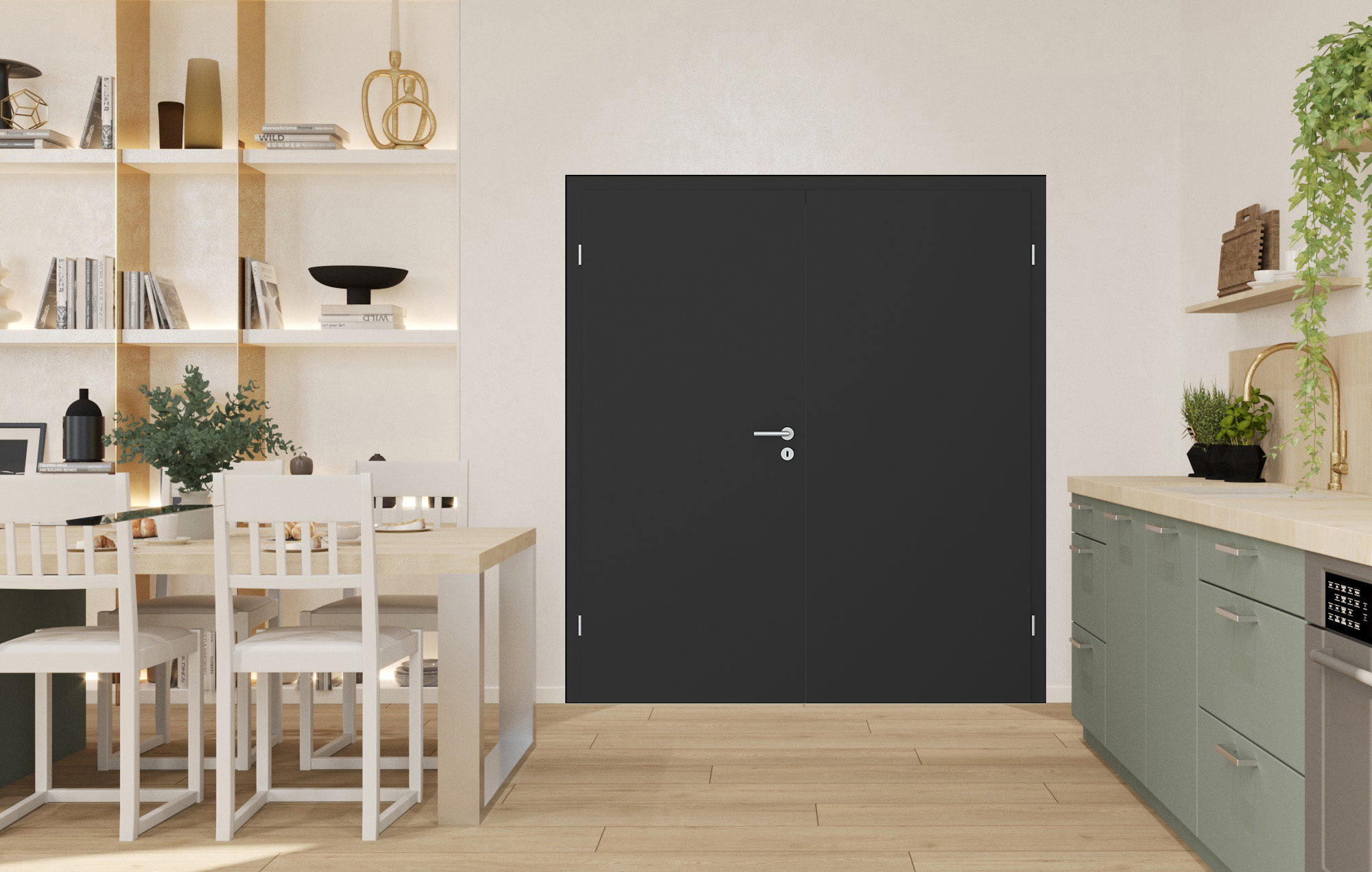 Visuelle Perfektion! Dank einer innovativen Oberflächentechnologie sind unsere Nanoline-Oberflächen besonders matt und pflegeleicht. Damit erfüllen sie nicht nur alle positiven Eigenschaften von CPL-Türen, sondern heben die Türenästhetik auf ein neues Level. Ein spezieller UV-Schutz sorgt für ein Oberflächenfinish sowie eine Unempfindlichkeit gegen Fingerabdrücke und allgemeine Verschmutzungen. Die samtige Haptik der Oberfläche lädt zum Anfassen ein und erzeugt eine einzigartige Wohlfühlatmosphäre. Als Doppeltür sind sie ein besonderes Gestaltungselement mit großer Wirkung. Bestehend aus einem Stand- sowie Geflügel verbinden sie Räume elegant miteinander, sind gleichzeitig aber auch ein praktischer Raumtrenner.