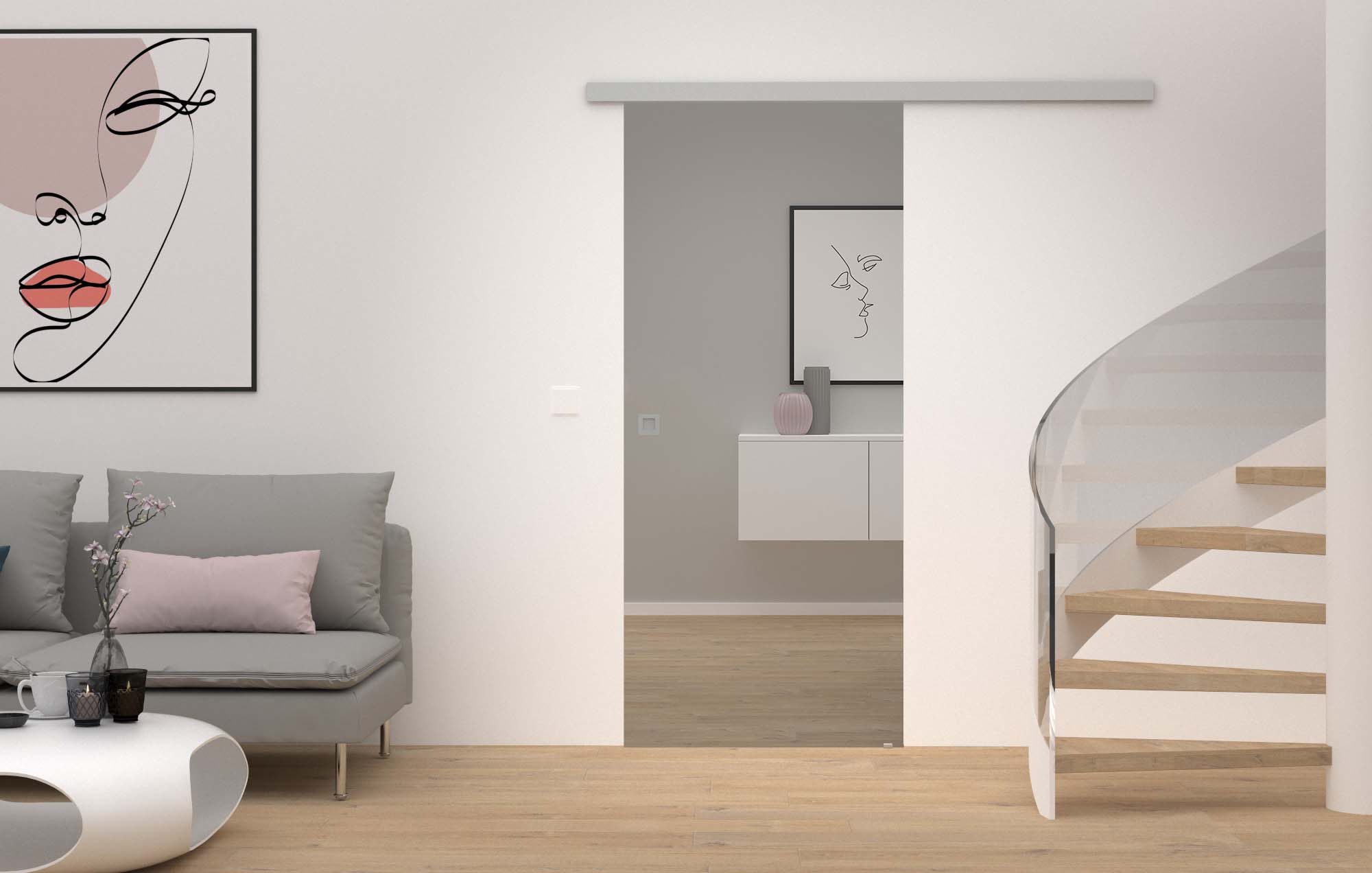 Dekorative Akzente: Glasschiebetüren sind wahre Raumhighlights, denn sie verbinden und trennen Räume auf eine besonders platzsparende und moderne Weise. Zudem sorgen sie für eine hohe Lichtdurchflutung, wodurch eine offene, helle Raumatmosphäre entsteht. Das Standardglas Parsol ist ein Floatglas, welches durch die Zugabe von Metalloxiden die spezifische Grautönung erhält und dadurch besonders elegant wirkt.