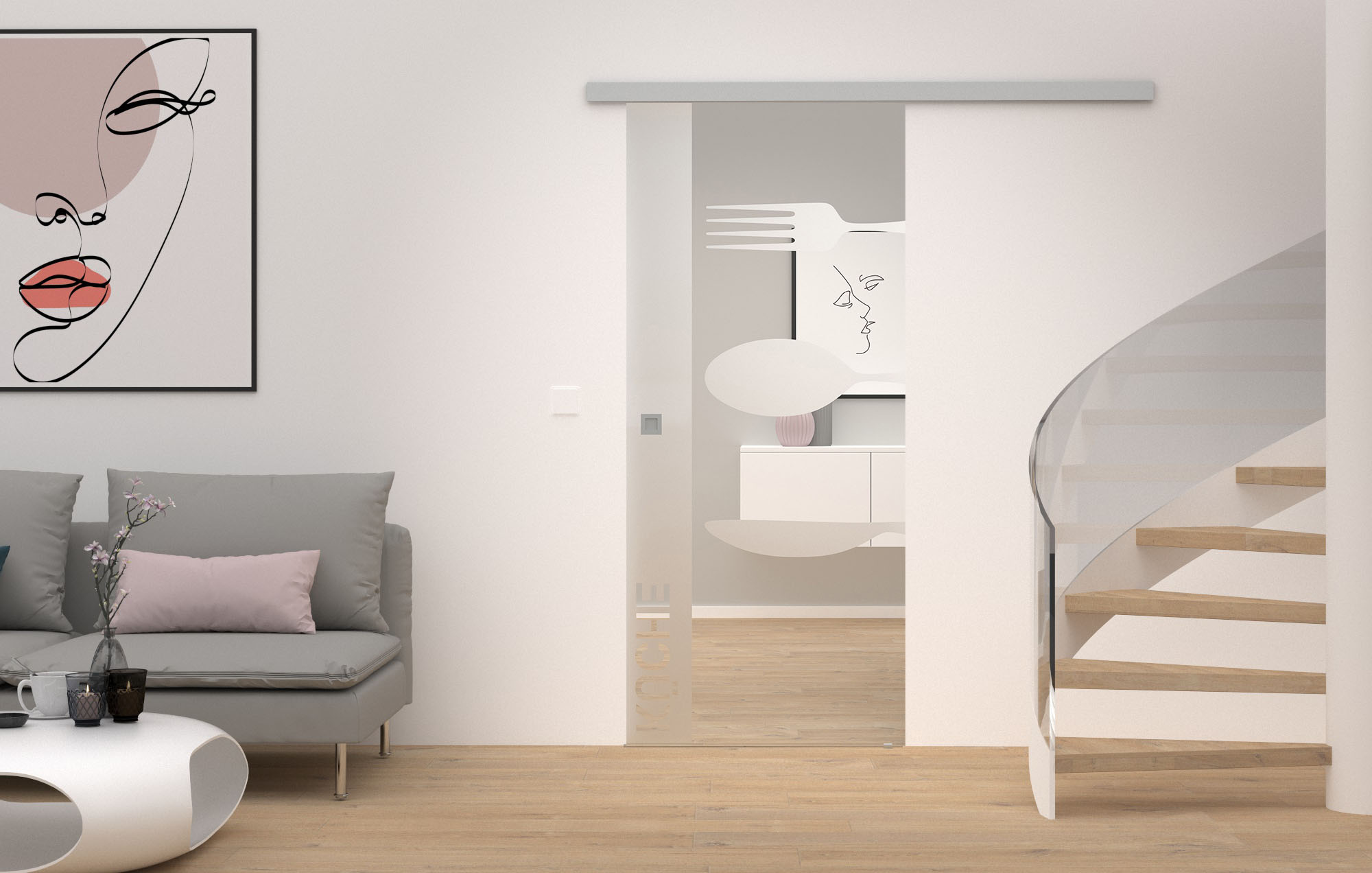 Sandiose Transparenz: Glasschiebetüren sind wahre Raumhighlights, denn sie verbinden und trennen Räume auf eine besonders platzsparende und moderne Weise. Zudem sorgen sie für eine hohe Lichtdurchflutung, wodurch eine offene, helle Raumatmosphäre entsteht. Die sanften Sandstrahlungen der Sandmotive setzen ansprechende Akzente, die mattierten Glasflächen in verschiedenen modernen Motiven sorgen gleichzeitig aber auch für ein Stück Privatsphäre.