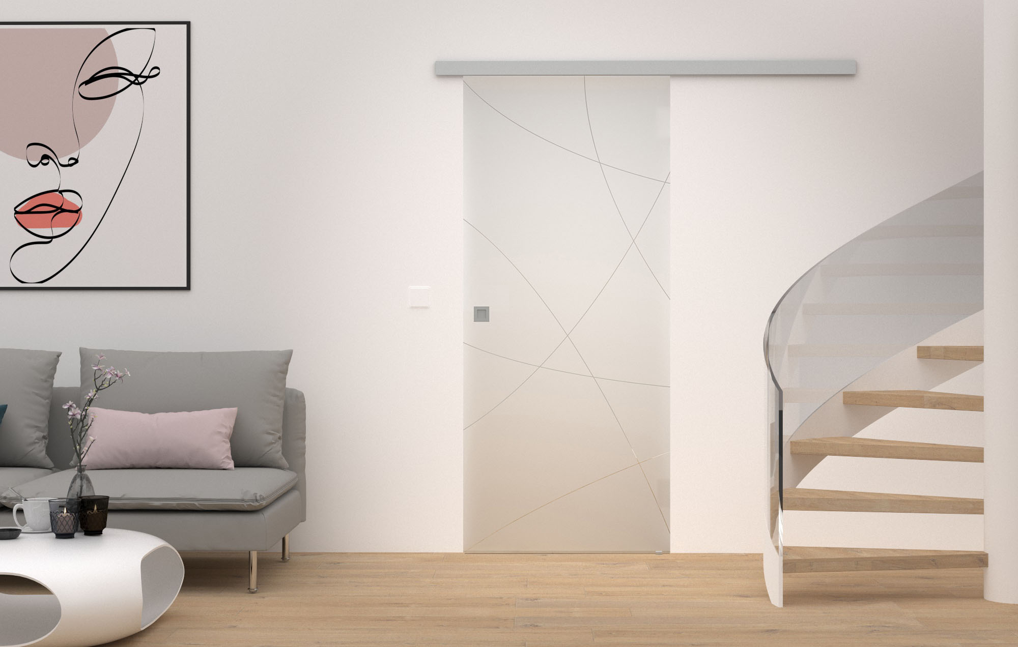 Sandiose Transparenz: Glasschiebetüren sind wahre Raumhighlights, denn sie verbinden und trennen Räume auf eine besonders platzsparende und moderne Weise. Zudem sorgen sie für eine hohe Lichtdurchflutung, wodurch eine offene, helle Raumatmosphäre entsteht. Die sanften Sandstrahlungen der Sandmotive setzen ansprechende Akzente, die mattierten Glasflächen in verschiedenen modernen Motiven sorgen gleichzeitig aber auch für ein Stück Privatsphäre.