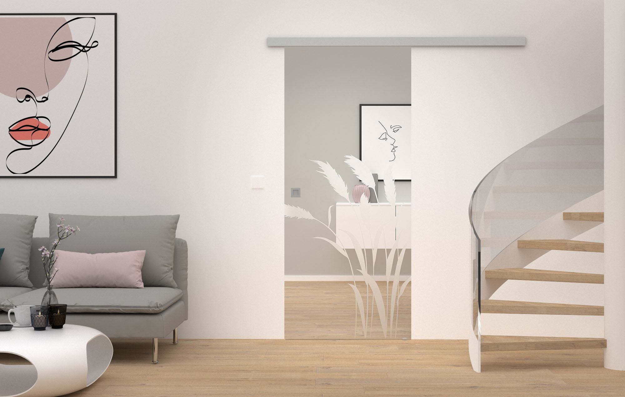Sandiose Transparenz: Glasschiebetüren sind wahre Raumhighlights, denn sie verbinden und trennen Räume auf eine besonders platzsparende und moderne Weise. Zudem sorgen sie für eine hohe Lichtdurchflutung, wodurch eine offene, helle Raumatmosphäre entsteht. Die sanften Sandstrahlungen der Sandmotive setzen ansprechende Akzente, die mattierten Glasflächen in verschiedenen modernen Motiven sorgen gleichzeitig aber auch für ein Stück Privatsphäre.