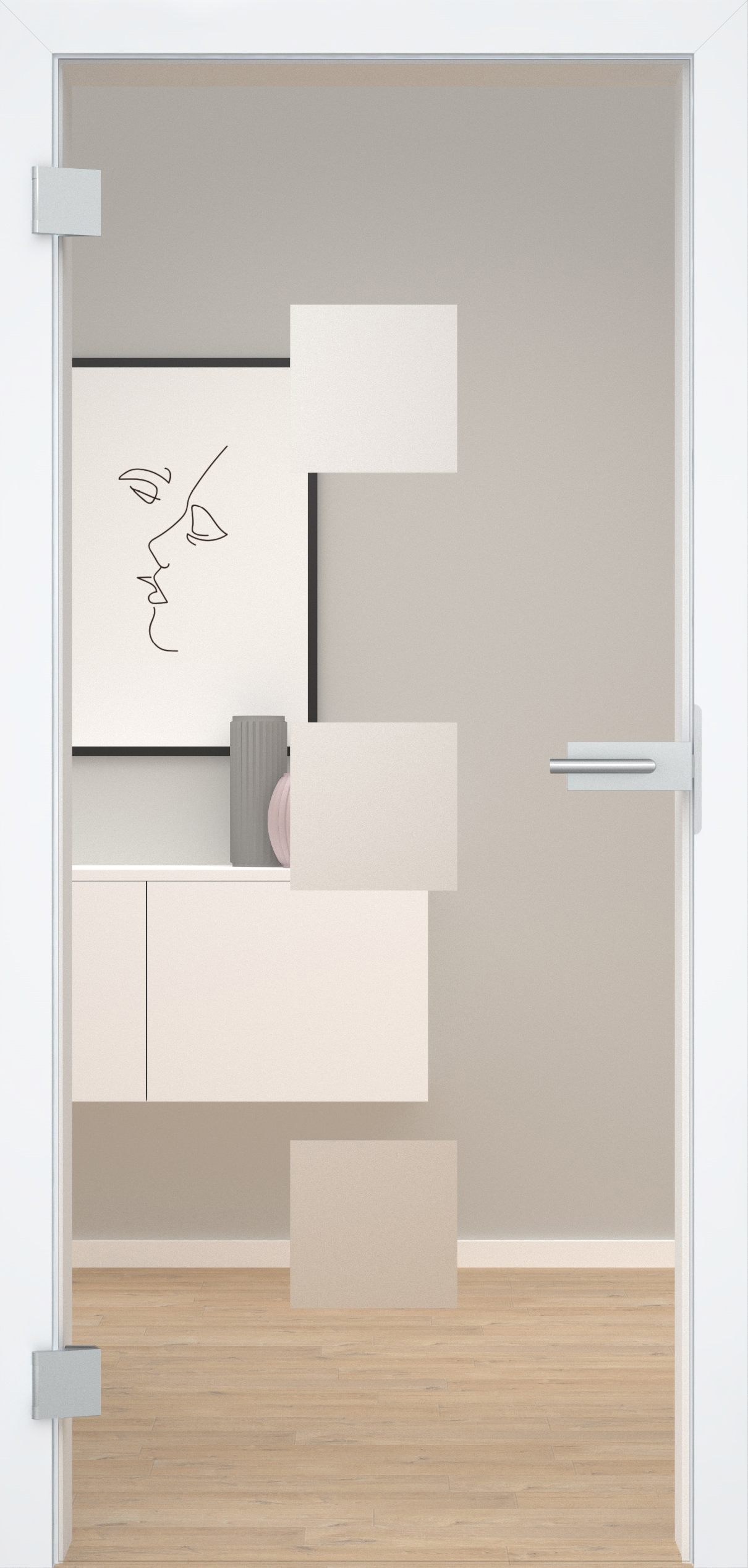 Der Klassiker: Unsere Ganzglastür Sandmotiv SA 1-N bietet eine hohe Transparenz mit drei satinierten Quadraten, die durch eine Sandstrahlung entstehen. Das Design ist absolut zeitlos und vermittelt eine harmonische Optik. Durch die hohe Transparenz wirken Räume verbundener und vor allem kleine Räume heller und größer. Bei dem Glas handelt es sich um ein stabiles, 8 mm Einscheibensicherheitsglas (ESG). Eine Nano-Versiegelung sorgt für einen zusätzlichen Schutz der Oberfläche.