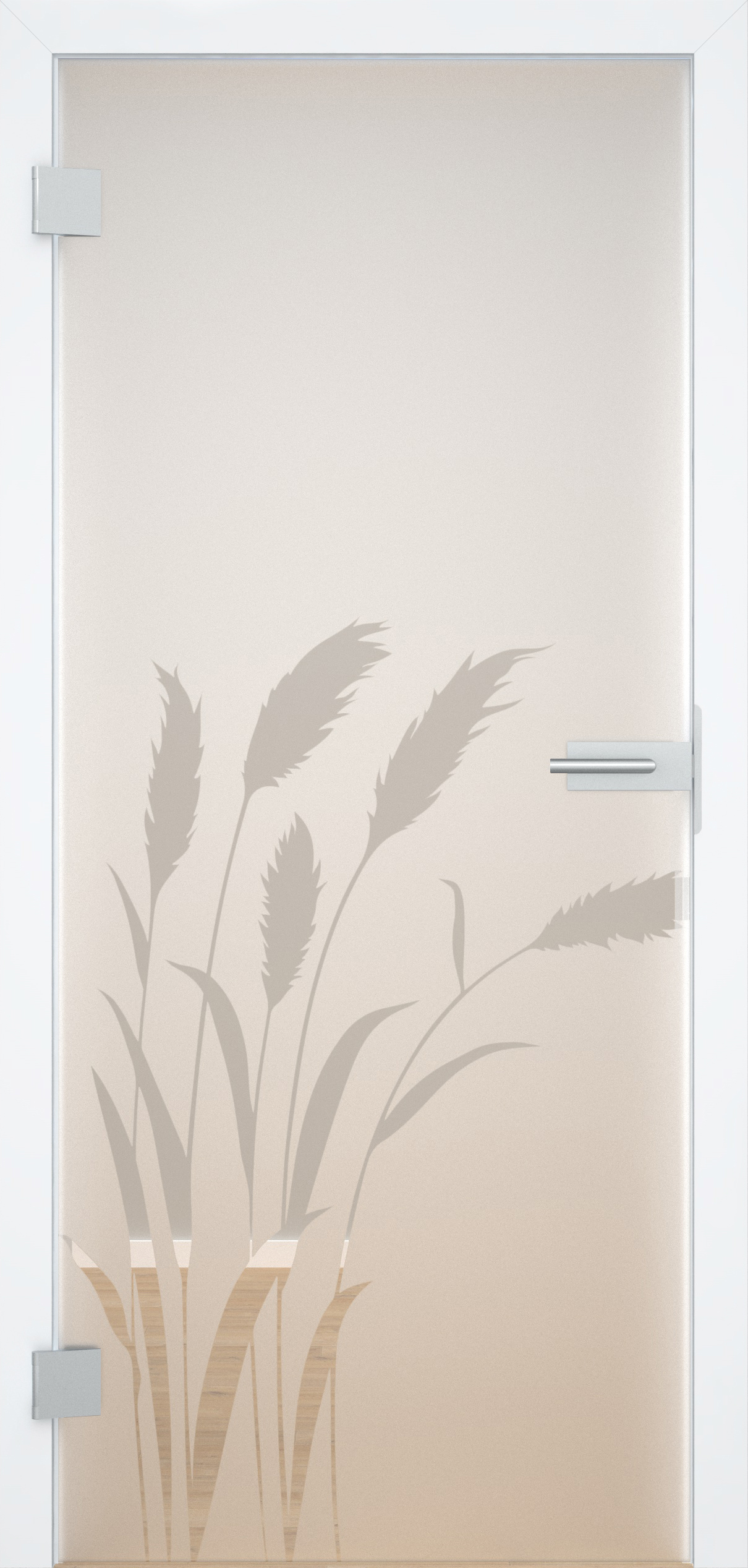 Natur pur: Unsere Ganzglastür Sandmotiv SA 92 besteht zu einem Großteil aus einer satinierten Fläche, die durch eine Sandstrahlung entsteht. Das Pampasgras wird als durchsichtiges Motiv dargestellt und bringt die Natur in die eigenen vier Wände. Die Glastür eignet sich aufgrund des hohen Mattanteils insbesondere für Räume, bei denen ein hohes Maß an Privatsphäre vorausgesetzt wird. Eine hohe Lichtdurchlässigkeit ist dennoch gegeben, wodurch Räume verbundener und vor allem kleine Räume heller und größer wirken. Bei dem Glas handelt es sich um ein stabiles, 8 mm Einscheibensicherheitsglas (ESG). Eine Nano-Versiegelung sorgt für einen zusätzlichen Schutz der Oberfläche.
