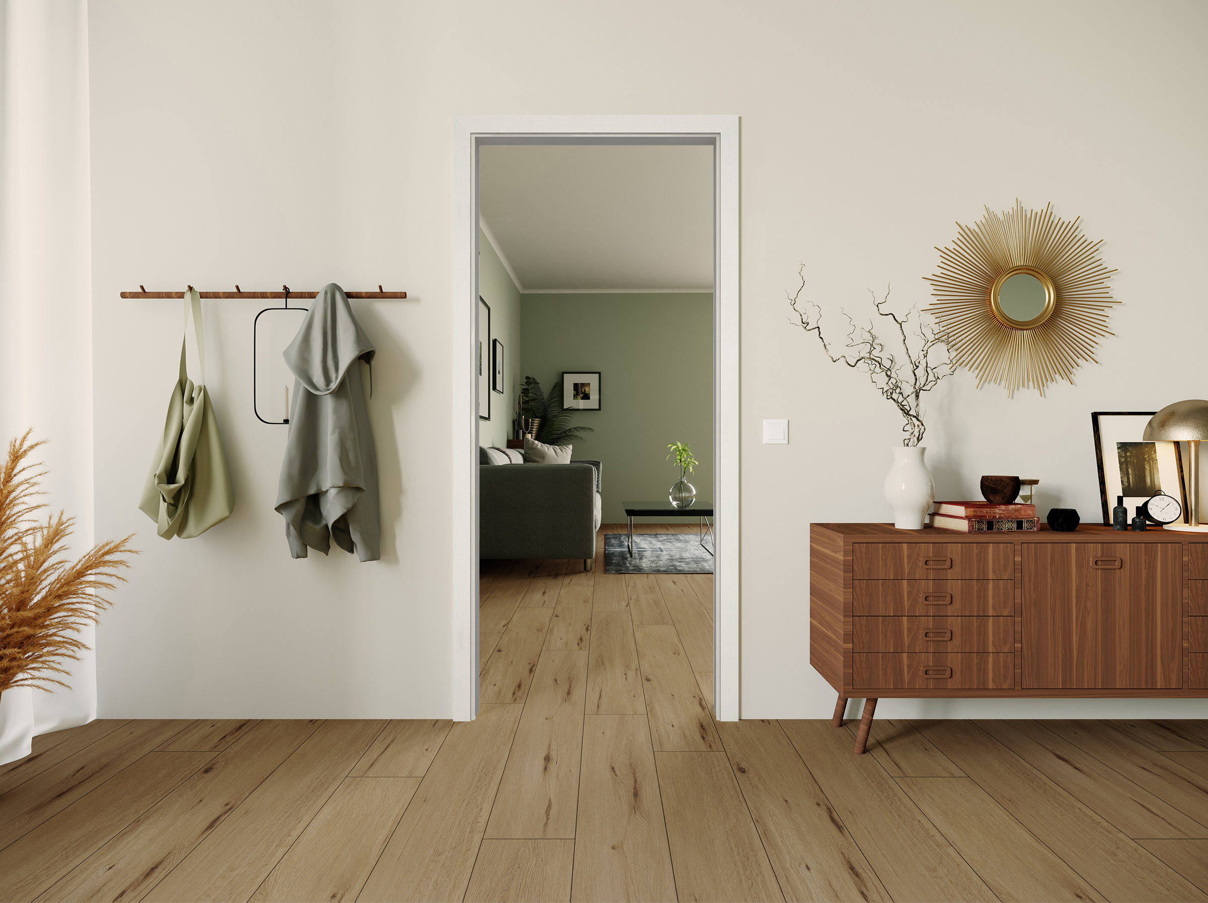 Stark im Alltag: Unsere CPL Klassik Zarge Esche weiß deckend ist der ideale Begleiter für unsere Tür CPL Klassik Esche weiß deckend. Das natürliche, zeitlose Design mit moderner Designkante und einer Bekleidungsbreite von 60 mm bietet die optimale Basis für jedes Zuhause. Durch die CPL-Oberfläche ist die Zarge zudem besonders strapazierfähig. Als Durchgangszarge kommt sie dort zum Einsatz, wo keine Tür gewünscht oder technisch nicht möglich ist. Sie sorgt für einen optisch ansprechenden Durchgang sowie für ein offenes Wohngefühl. Auf Bänder, Schließbleche und Dichtungen wird hierbei bewusst verzichtet.